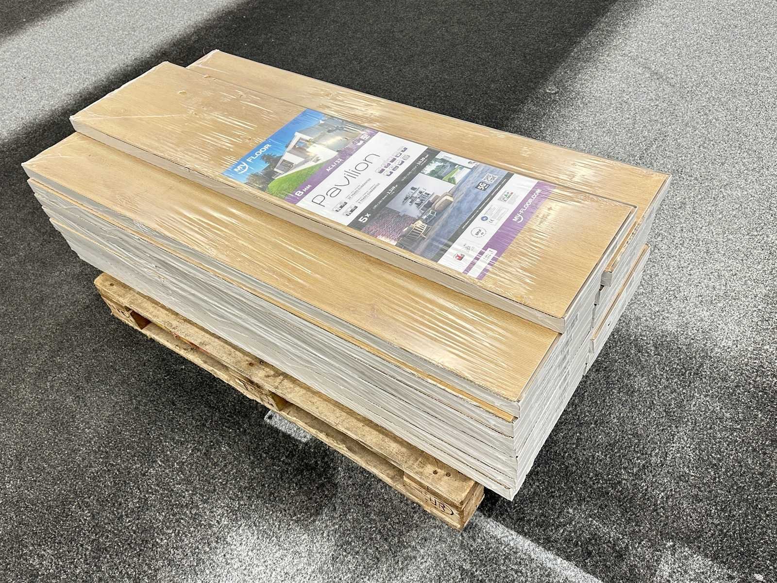 17 verpakkingen Merk: Pavilion Aantal m² per verpakking: 2,249m² Kleur: Naturel Eiken Lengte: 1380mm Breedte: 236mm Hoogte: 8mm