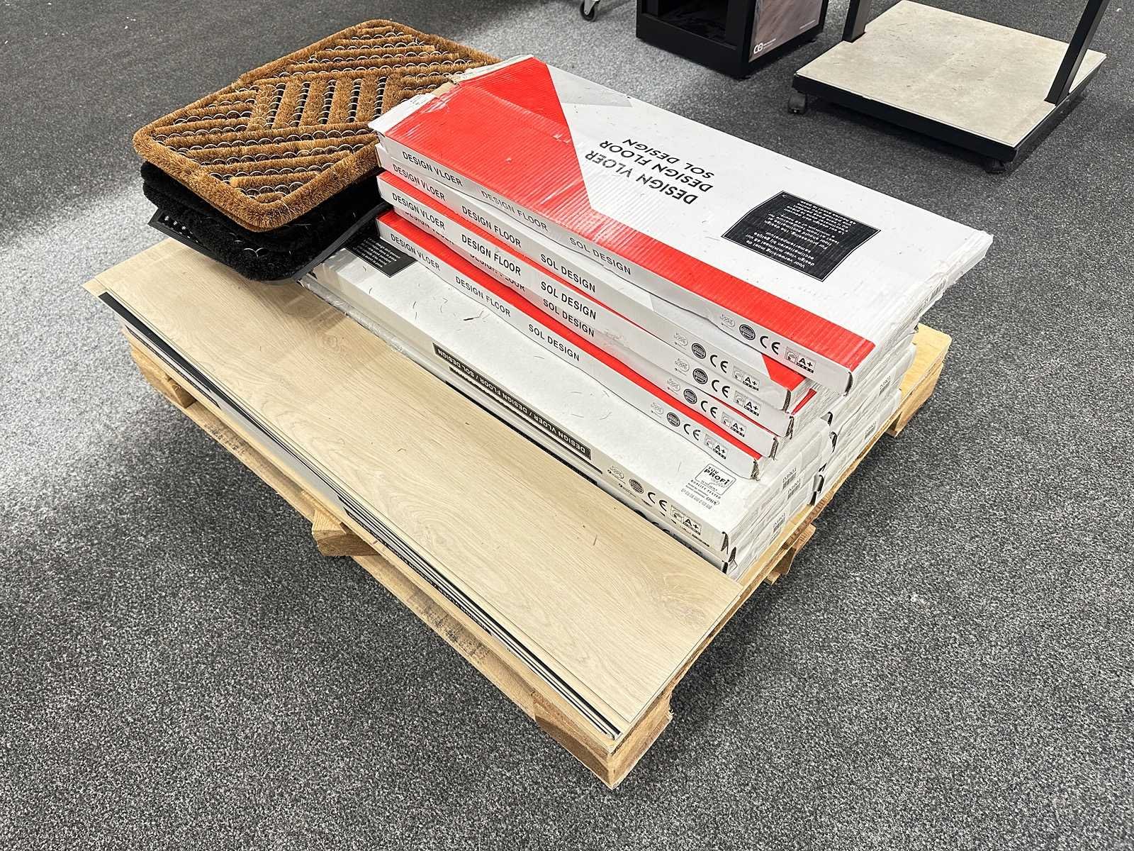 Deze partij bestaat uit 17 verpakkingen laminaat en 4 deurmatten