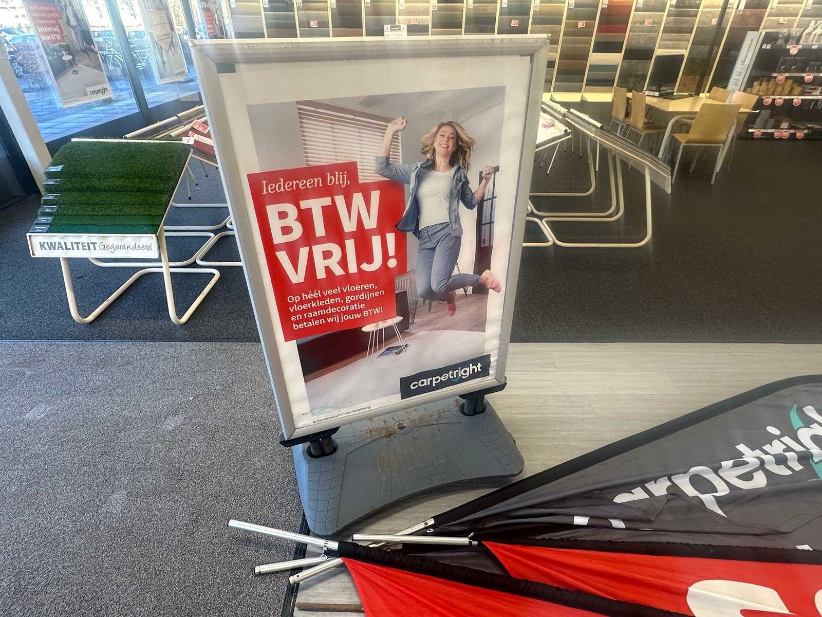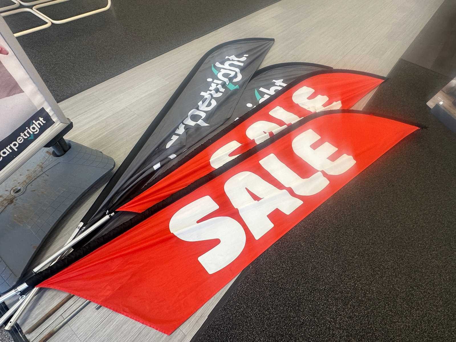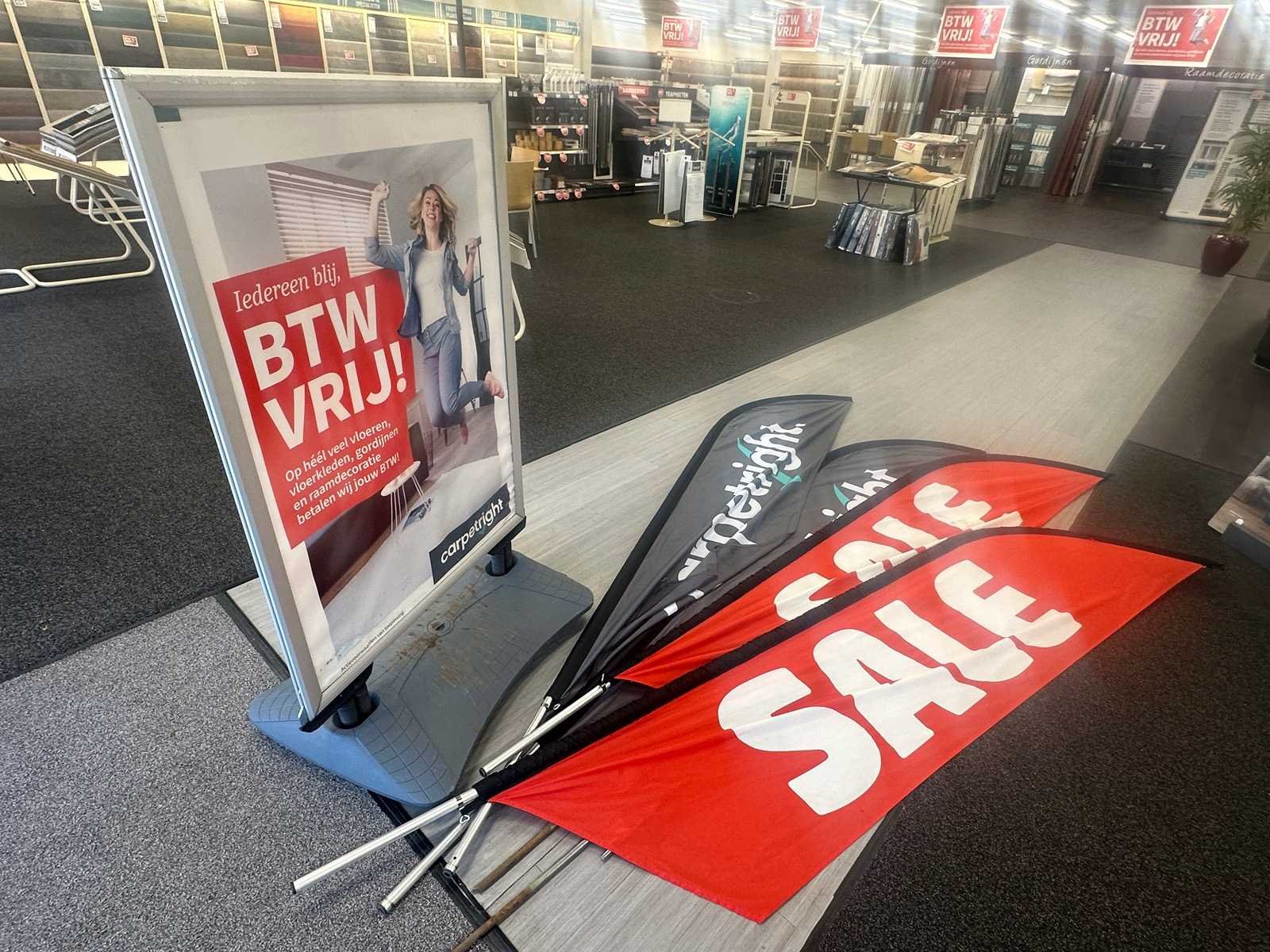 Stoepbord en 4 beachvlaggen
