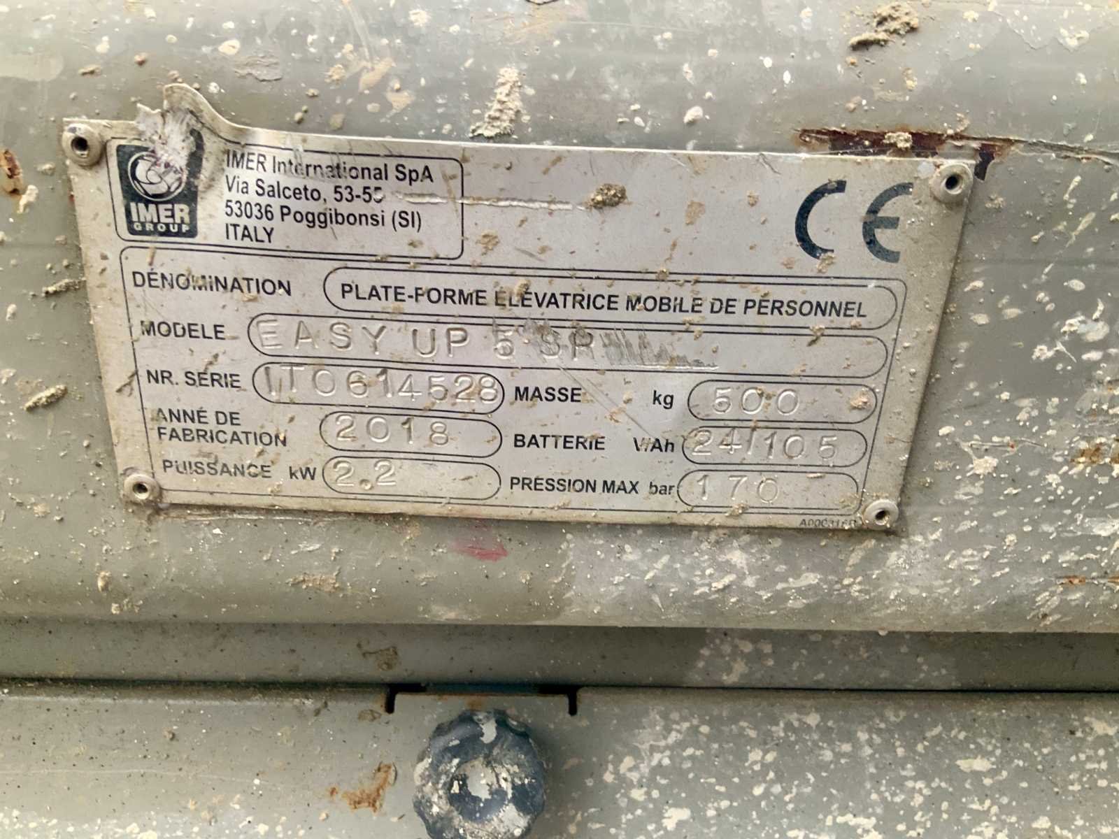 Uitgevoerd met non-marking banden, machine werkt niet, met gebruiksaanwijzing Merk: Imer/Iteco Type: Easy Up5SP Bouwjaar: 2018 Serienummer: ITO614528 Elektrisch: true Schaarhoogwerker: true Werkhoogte: 5000mm Plateau afm. l: 1400mm Plateau afm. b: 760mm Platform capaciteit: 200kg Accu lader: true Eigen gewicht: 500kg Totale afmeting L: 1400mm Totale afmeting Breedte: 760mm Totale afmeting Hoogte: 1800mm