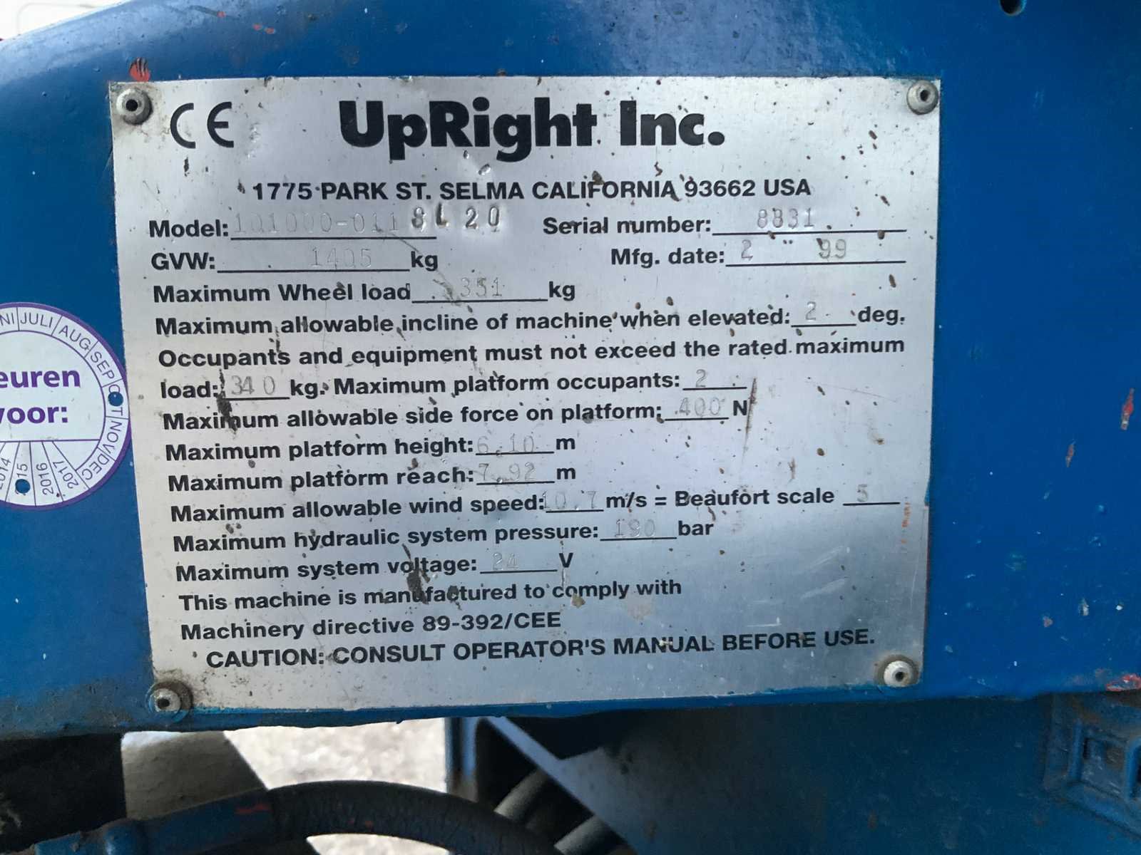 1999 upright sl20 hoogwerker