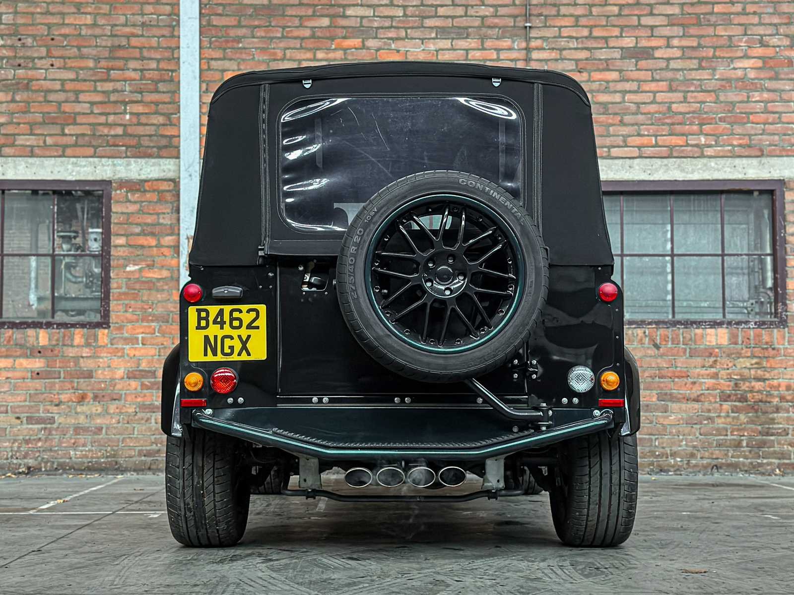 Merk: Land Rover Model: Defender Type: L315 (5.0 V8 MUSTANG-ENGINE) Brandstof: Benzine Afgelezen mijlenstand: 1675mi Chassisnummer: SALLDVAH7AA236867 Datum eerste toelating: 10-05-1985 Vermogen (pk): 700hp Aandrijving: Vierwielaandrijving Aantal zitplaatsen: 2 Kleur: Groen Transmissie: Handgeschakeld Stuurwiel: Links gestuurd Aantal cilinders: 8 Carrosserie: SUV Nationaliteit documenten: Engels V5C