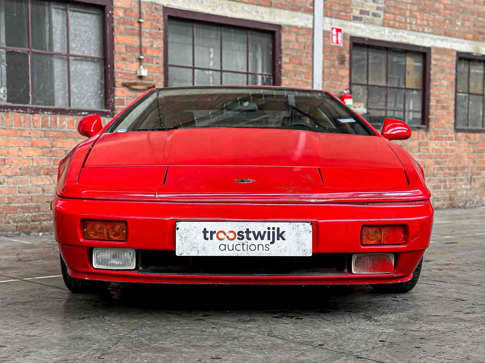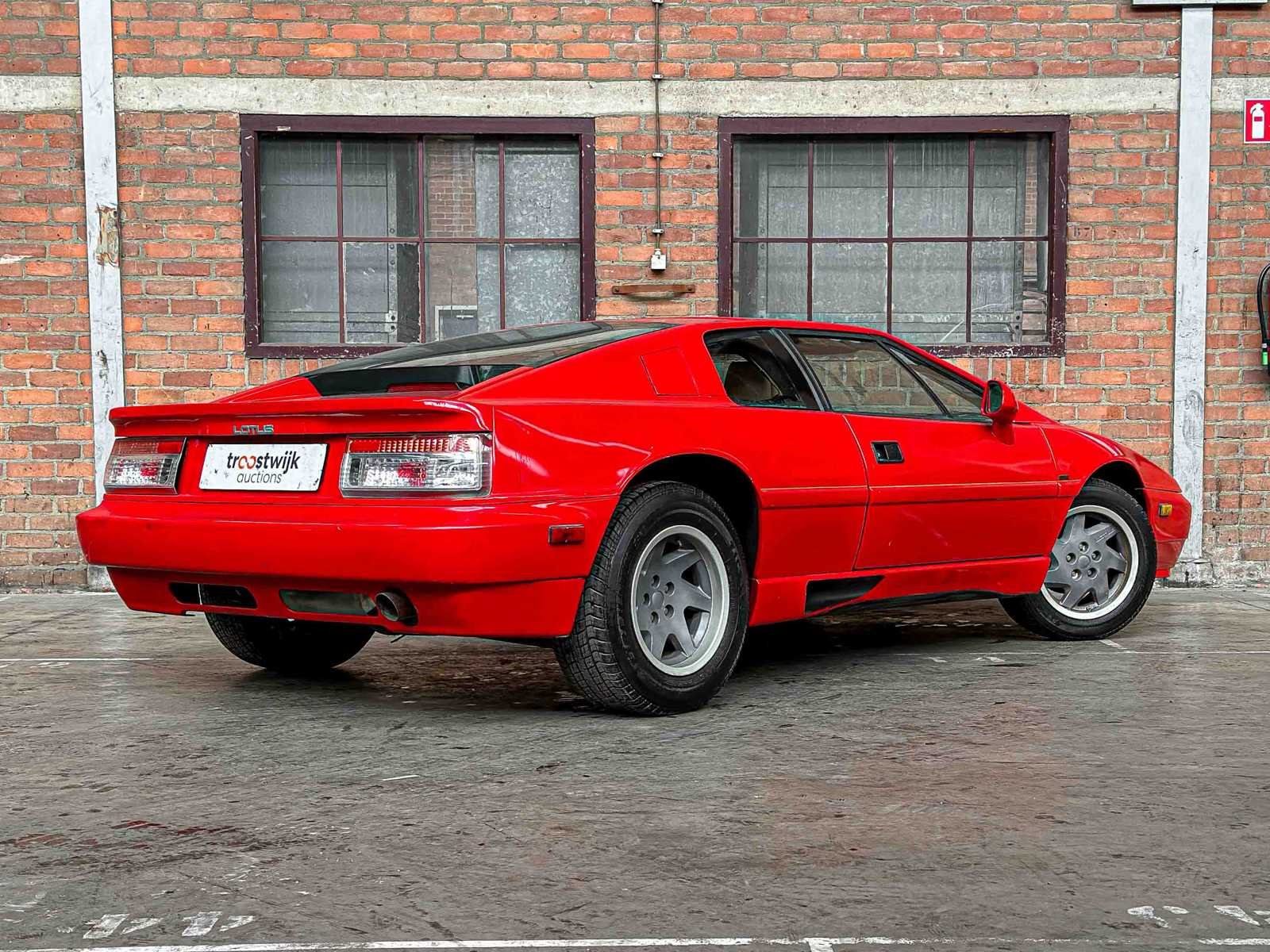 Merk: Lotus Model: Esprit Type: SE 2.2 Bouwjaar: 1988 Brandstof: Benzine Afgelezen mijlenstand: 38523mi Chassisnummer: SCCFC20AXJHF62319 Datum eerste toelating: 1988-01-01 Vermogen (pk): 268hp Aandrijving: Achterwielaandrijving Kleur: Rood Transmissie: Handgeschakeld Stuurwiel: Links Nationaliteit documenten: Amerikaan invoerrechten en Btw zijn betaald Onderhoudshistorie: Ja, gedeeltelijk