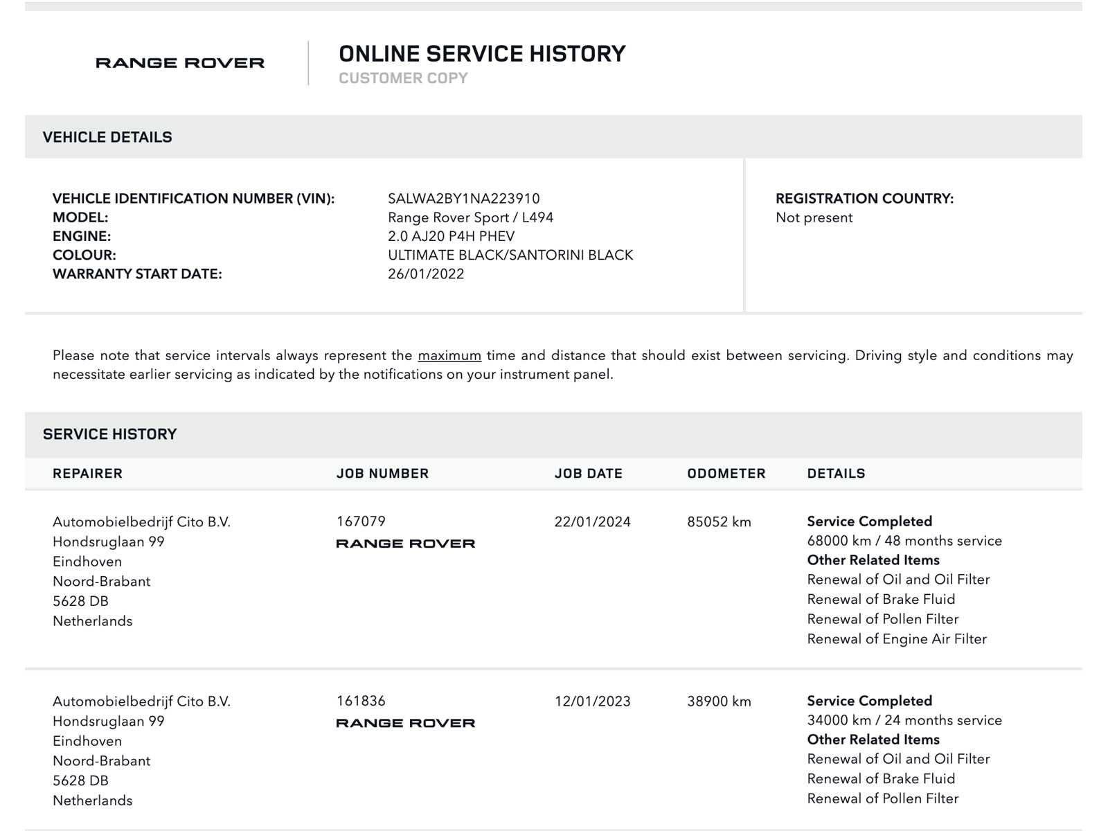 LET OP! Voor Nederlandse kopers en kopers van buiten de EU komt de Rest-BPM er nog bij, deze verschijnt later op de factuur en bedraagt €3.128,-. Dus, totale biedprijs + €3.128,-. De totaalprijs bij het bieden is dus excl. BPM! (This is only relevant for Dutch buyers and buyers from outside the EU). Important: international buyers (within the EU) can purchase this lot without the remaining amount Dutch BPM tax ('rest-BPM'). For this lot, buyer pays the BPM tax as a deposit and after infinite registration of this lot in your EU-country within an agreed time frame, the deposit will be refunded. Dutch and non-EU buyers will pay the BPM via the invoice of this lot. Kenteken: N-694-VK Merk: Land Rover Model: Range Rover Sport Type: P400e Limited Edition Plug-In Hybrid Afgelezen kilometerstand: 150950km Cilinderinhoud: 1997cc Vermogen (kW): 221kW Brandstof: Hybride (Benzine & Elektriciteit) Chassisnummer: SALWA2BY1NA223910 NAP status: Logisch Datum eerste toelating: 2022-01-10 Datum eerste toelating (NL): 2022-01-10 APK vervaldatum: 2026-01-10 Vermogen (pk): 300hp Aandrijving: Vierwielaandrijving Aantal zitplaatsen: 5 Kleur: zwart Transmissie: Automaat Stuurwiel: Links gestuurd Emissieklasse: 6 Aantal deuren: 5 Ledig gewicht: 2515kg Bruto BPM (NL): 7646€ Aantal cilinders: 4 Carrosserie: SUV Nationaliteit documenten: Nederlandse kentekendocumenten Onderhoudshistorie: Ja gedeeltelijk
