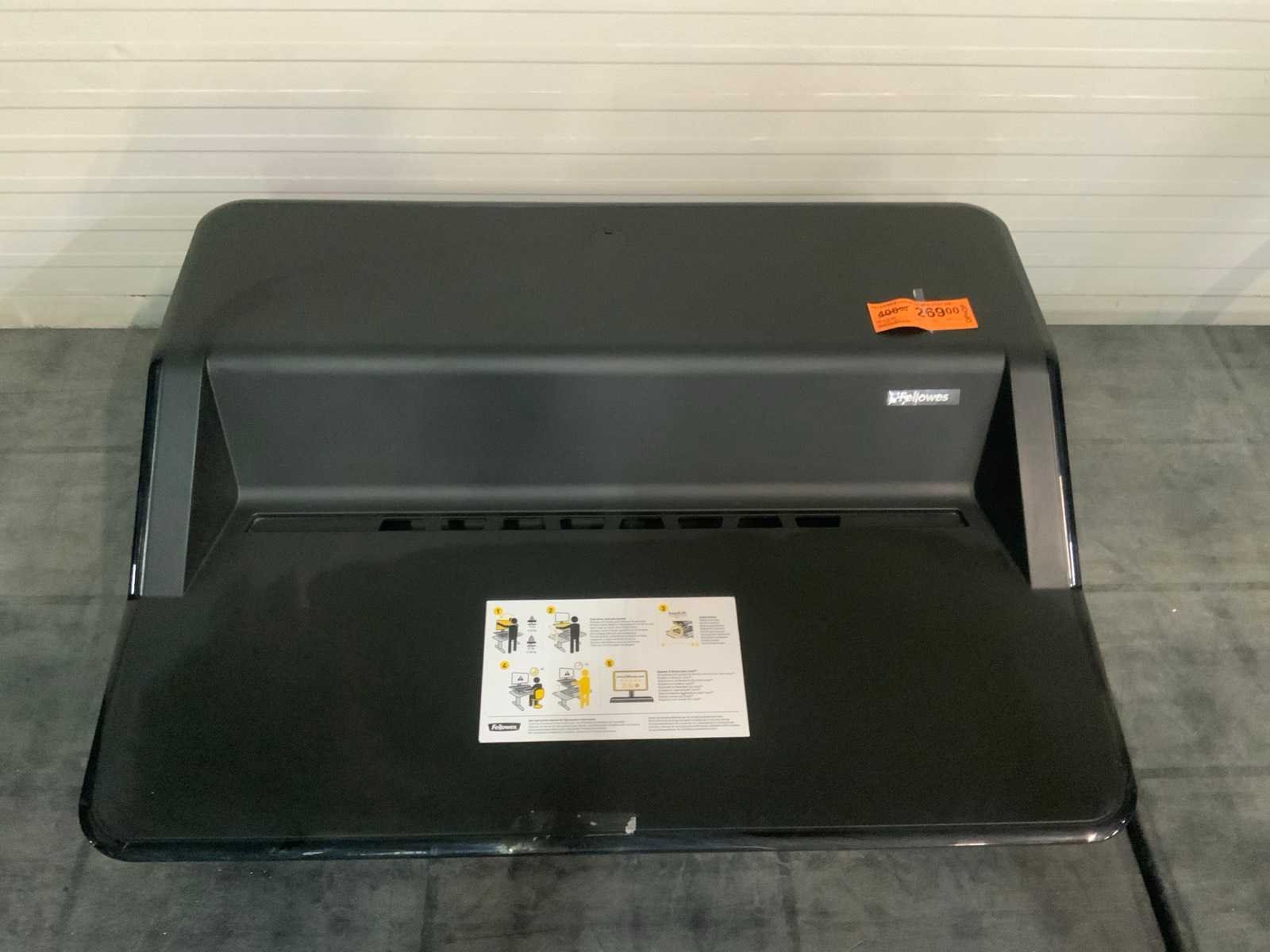 Verstelbaar Merk: Fellowes Type: Lotus Kleur: Zwart Lengte: 83cm Breedte: 61cm Hoogte: 25cm