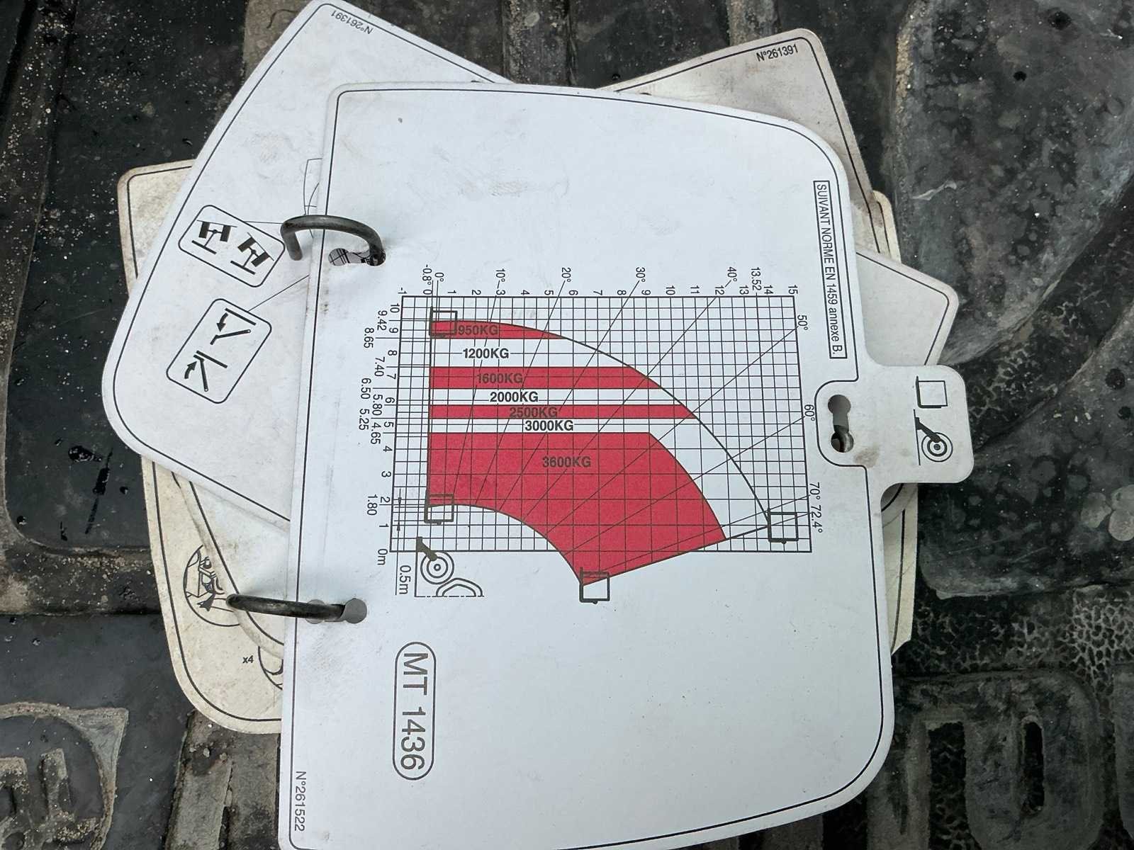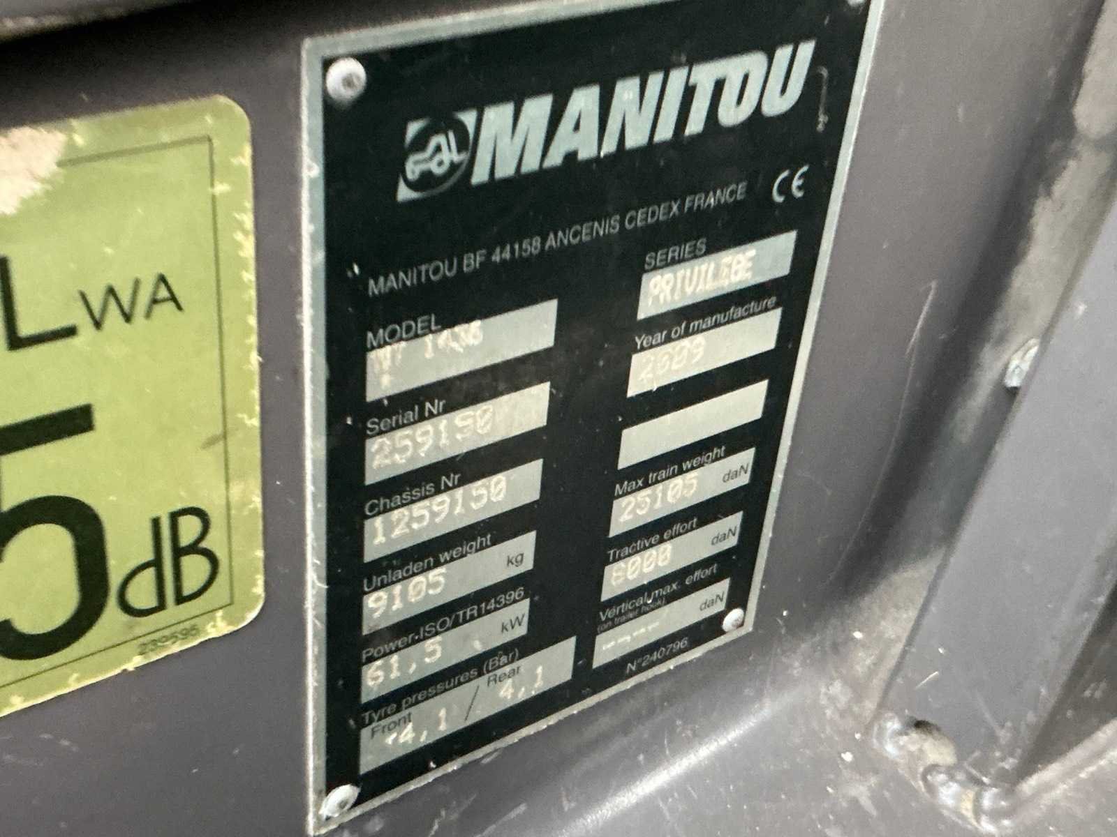 Merk: Manitou Type: MT 1436 Bouwjaar: 2009 Serienummer: 259150 Kenteken: TSK-28-H Motorvermogen (kW): 61.5kW Hefvermogen: 3600kg Hefhoogte: 14000mm Cabine: true Vierwielaandrijving 4x4: true Lepellengte: 1150mm Hydraulisch verstelbare lepels: true Luchtbanden: true Afgelezen urenstand: 5635 Eigen gewicht: 9105kg Totale afmeting Breedte: 2600mm Totale afmeting Hoogte: 2600mm