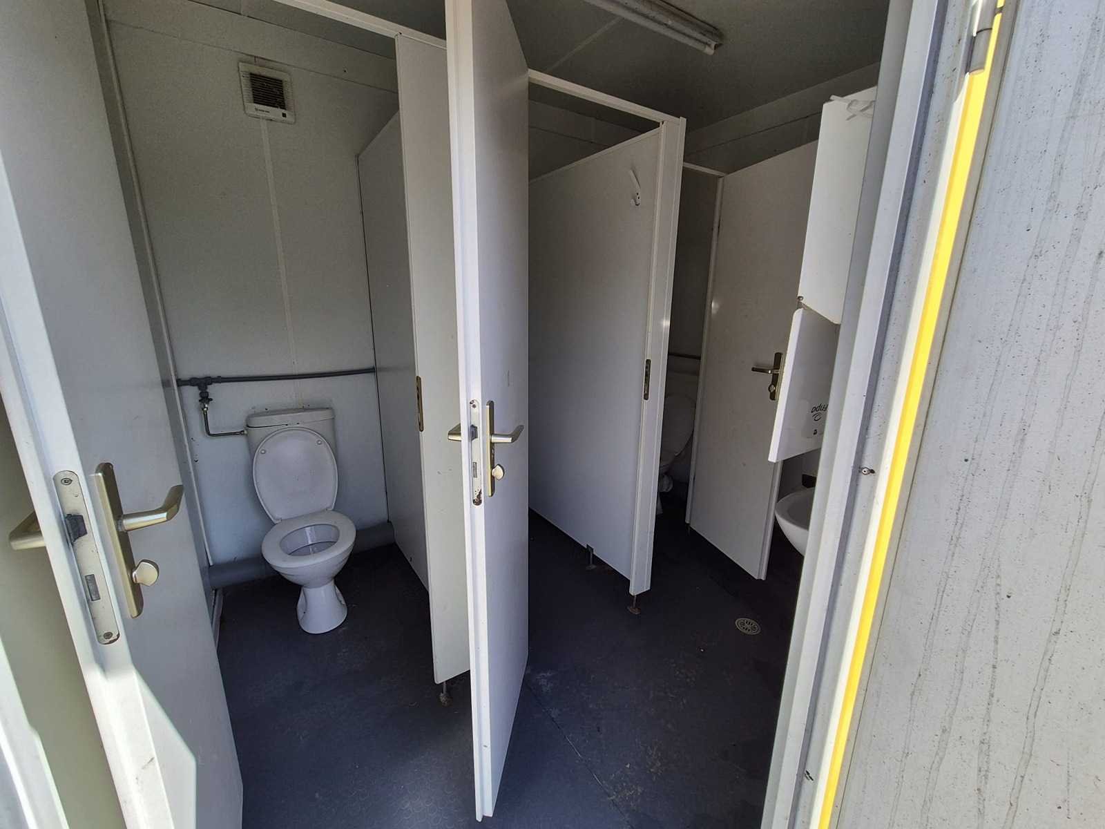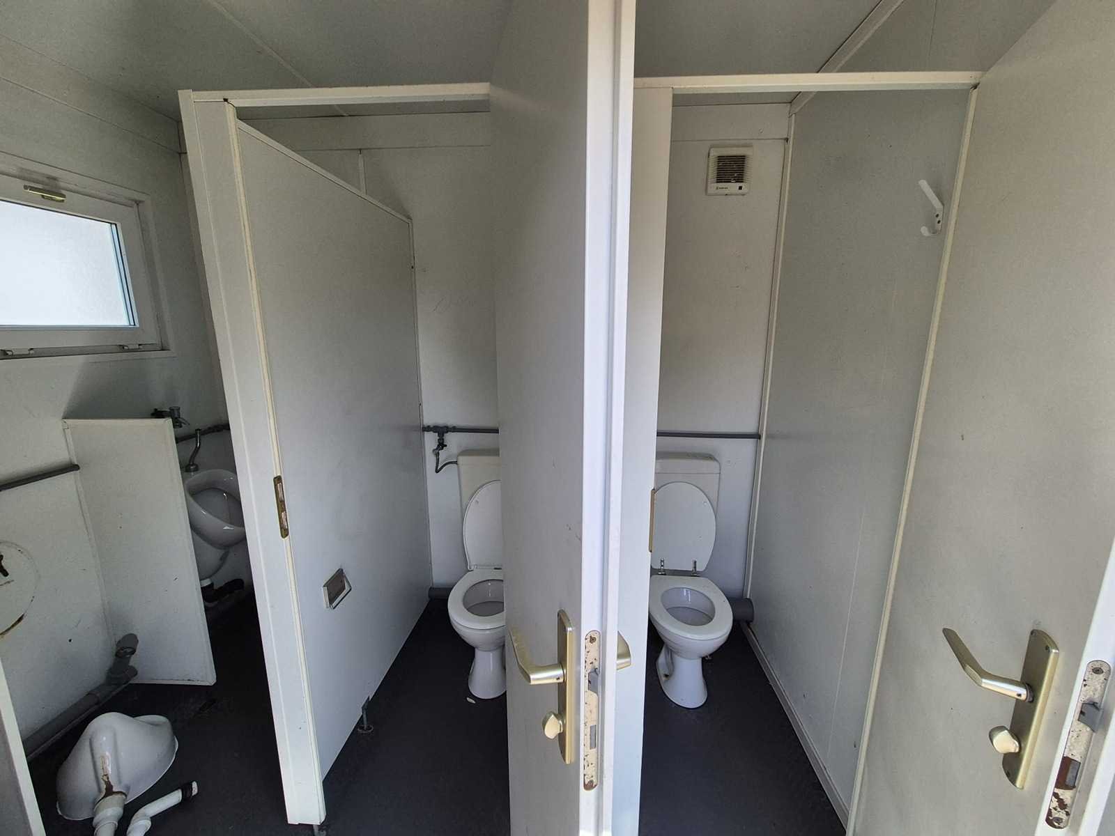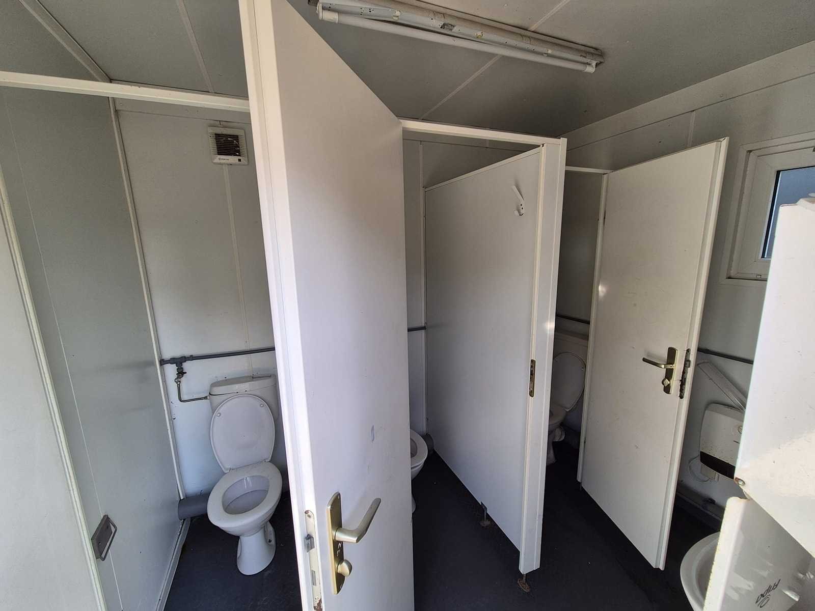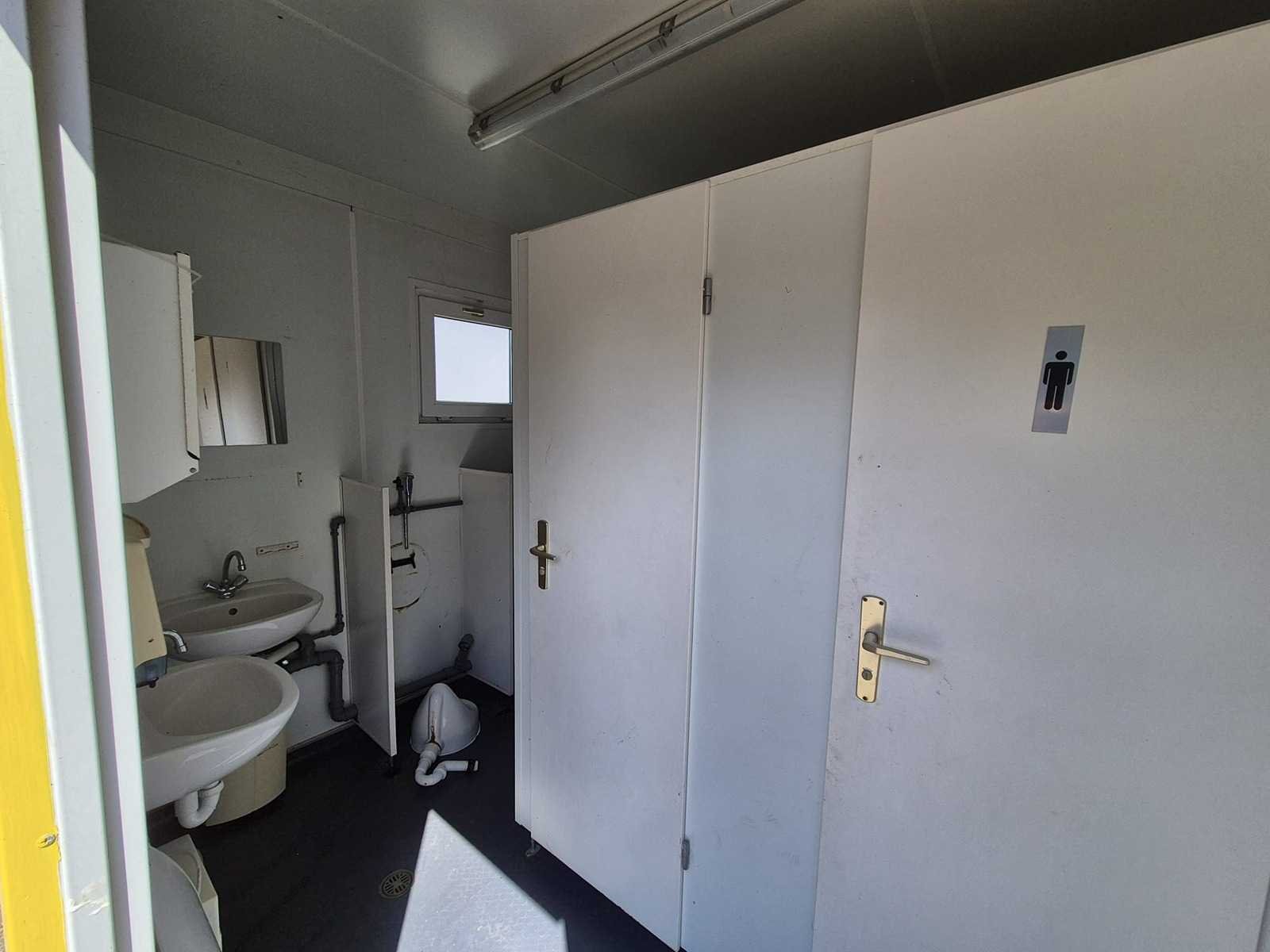 20ft; 5x toilet; 2x urinoir; 2x wasbak; elektrische boiler, verwarming, verlichting Totale afmeting L: 6050mm Totale afmeting Breedte: 2500mm Totale afmeting Hoogte: 2600mm