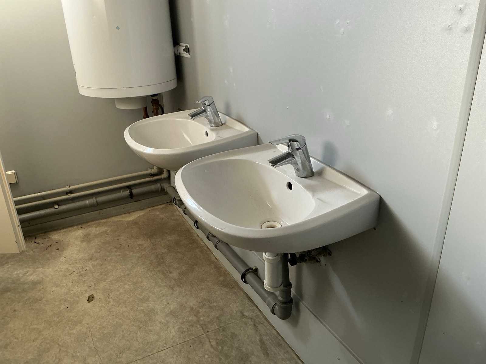 3x toegangsdeur; ‘ACV’ 150 liter elektrische boiler; verlichting Afmeting l: 6000mm Afmeting b: 3000mm Afmeting h: 3000mm Aantal ramen: 2 Aantal toiletten: 2 Aantal wastafels: 2 Aantal douches: 2