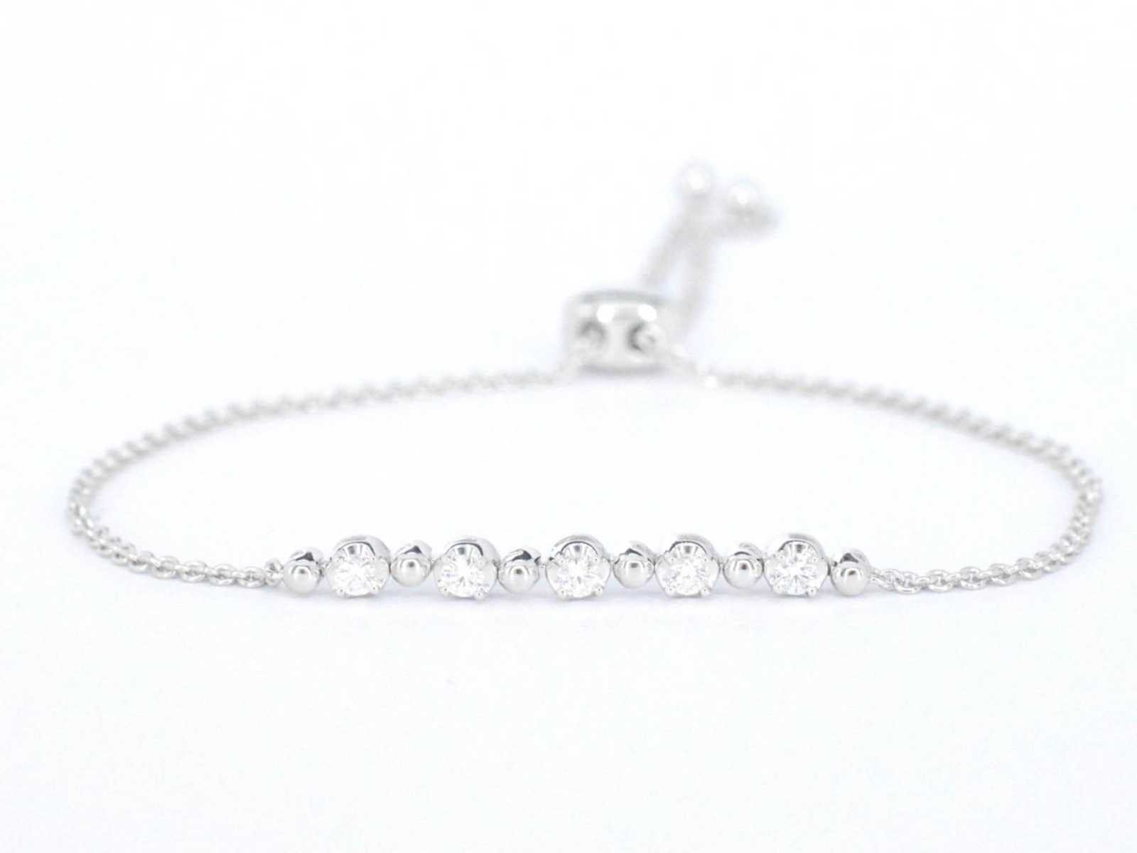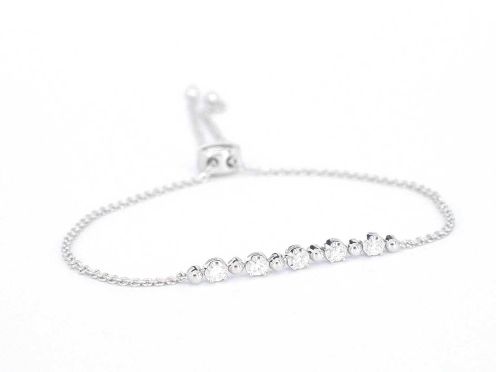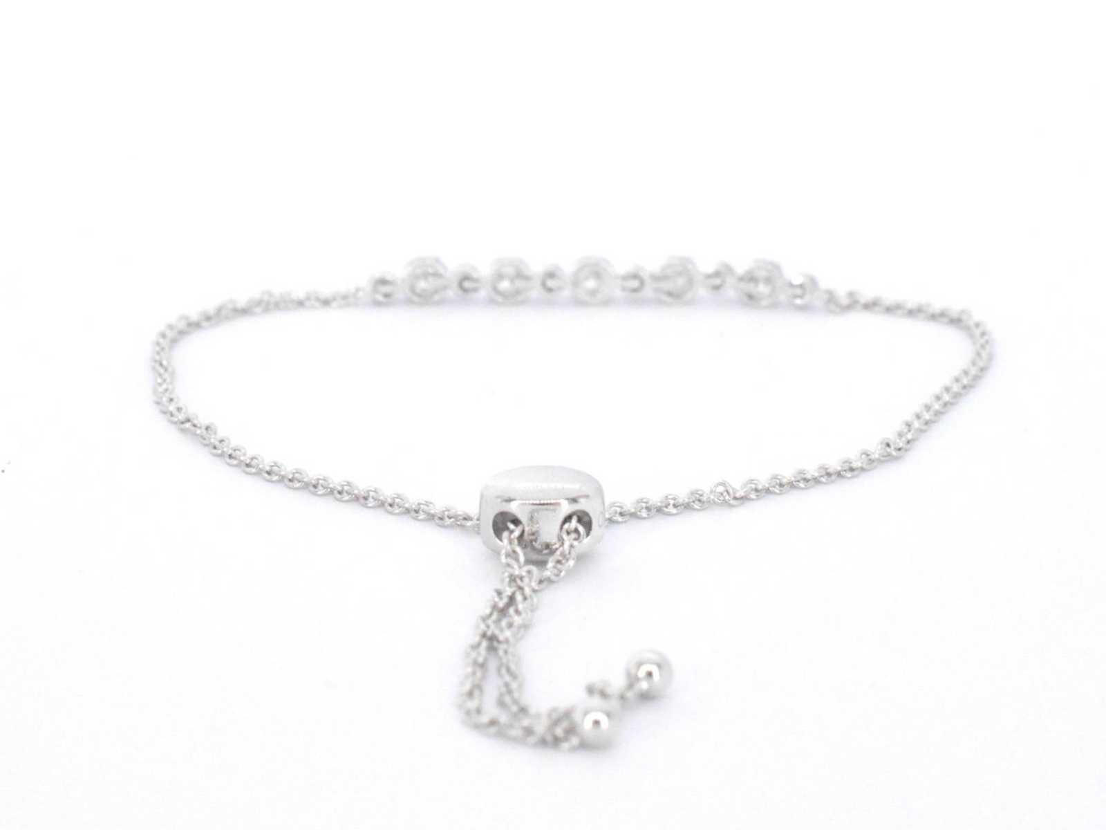 Samenvatting van gegevens Witgouden armband met natuurlijke diamanten Diamant: Natuurlijk; Aantal: 5 stuks; Slijpvorm: Briljant geslepen; Gewicht (carat): 0.20 carat; Kleur: F-G; Zuiverheid: VS; Slijpkwaliteit: Zeer mooi; Juweel: Armband; Gewicht: 2.7 gram; Afmetingen/lengte: maximaal 19 cm (verstelbaar mechanisme); Materiaal: 18K goud (750); Conditie: Nieuw; Verpakking: Luxe sieradendoos; Toelichting: De kwaliteit is overgenomen van het rapport behorend bij item. De waardebepaling is een beoordeling van een gecertificeerde diamantair, gebaseerd op consumentenprijzen.; Consumentenprijs: € 3.168,- Within 14 days Materiaal: Goud Voornaamste diamant: Natuurlijk Kleur diamant: F-G Gewicht diamant: 0.20ct Slijpvorm diamant: Briljant geslepen Slijpkwaliteit diamant: Zeer mooi Zuiverheidsgraad diamant: VS Totaal gewicht: 2.7g Keurmerk: 750