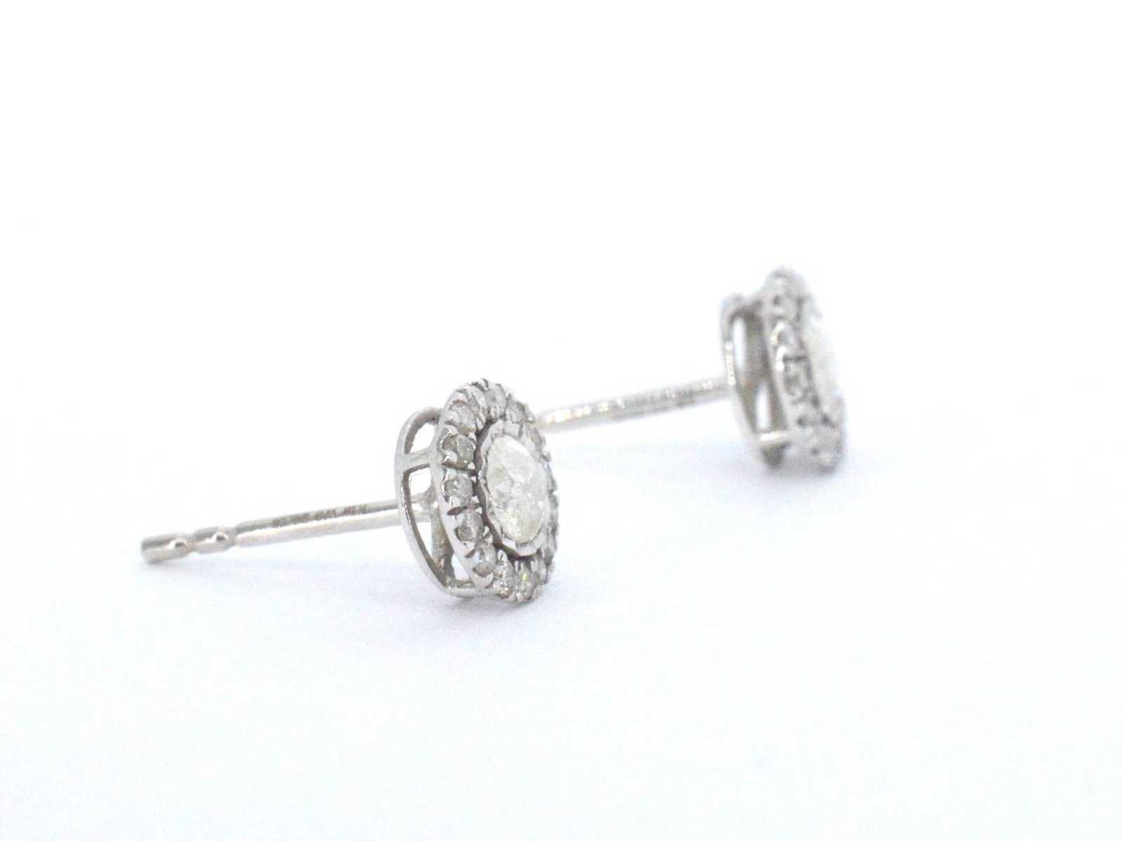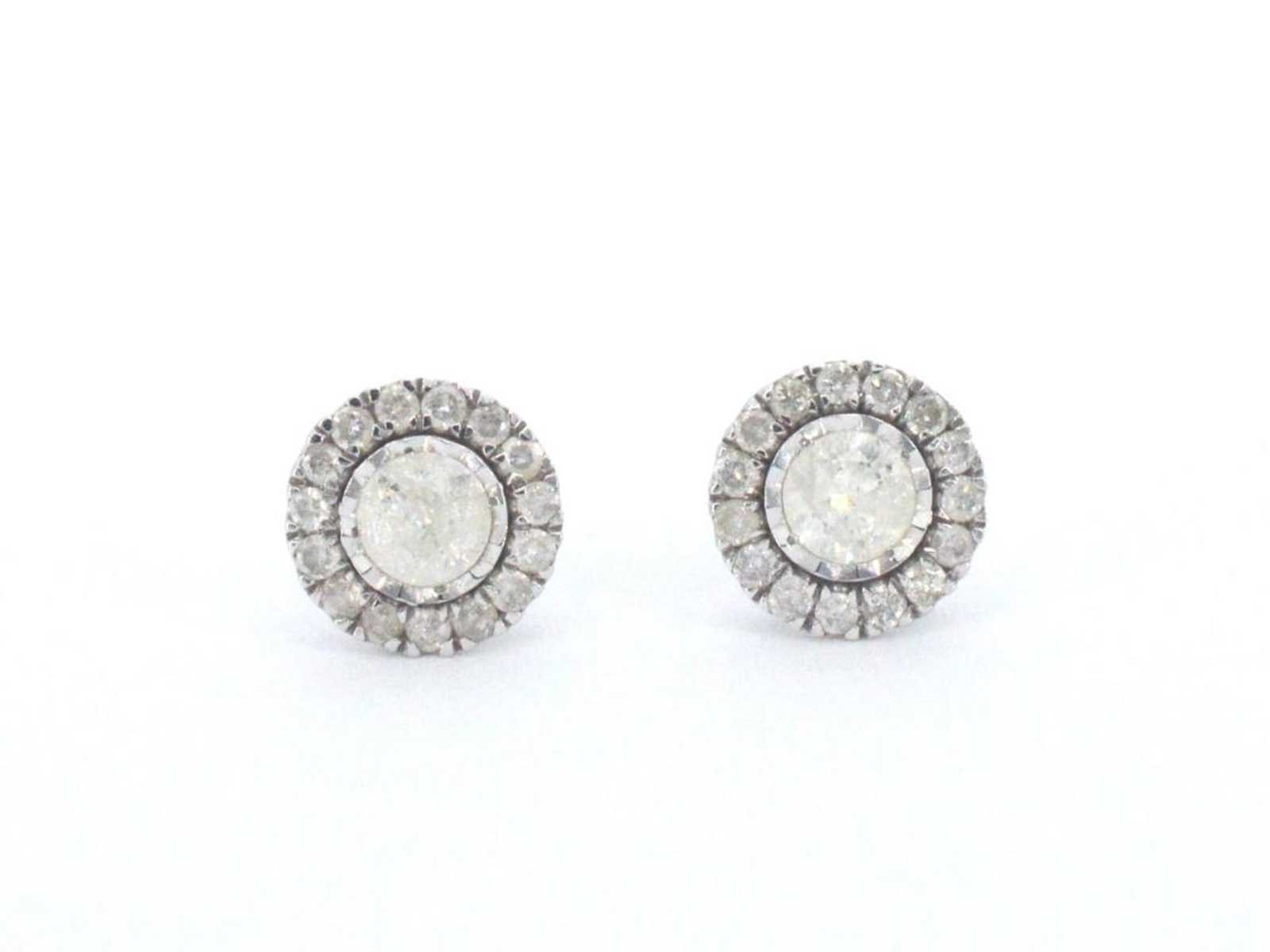 Samenvatting van gegevens Witgouden entourage oorbellen met milky diamanten Diamant: Natuurlijk; Aantal: 32 stuks; Slijpvorm: Briljant geslepen; Gewicht (carat): 0.50 carat; Kleur: F; Zuiverheid: P2; Slijpkwaliteit: Zeer mooi; Juweel: Oorbellen; Gewicht: 1.4 gram; Materiaal: 18k goud (750); Conditie: Zo goed als nieuw; Verpakking: Luxe sieradendoos; Toelichting: De kwaliteit is overgenomen van het rapport behorend bij item. De waardebepaling is een beoordeling van een gecertificeerde diamantair, gebaseerd op consumentenprijzen.; Consumentenprijs: € 2.380,- Within 14 days Materiaal: Goud Voornaamste diamant: Natuurlijk Kleur diamant: F Gewicht diamant: 0.50ct Slijpvorm diamant: Briljant geslepen Slijpkwaliteit diamant: Zeer mooi Zuiverheidsgraad diamant: P2 Totaal gewicht: 1.4g Keurmerk: 750