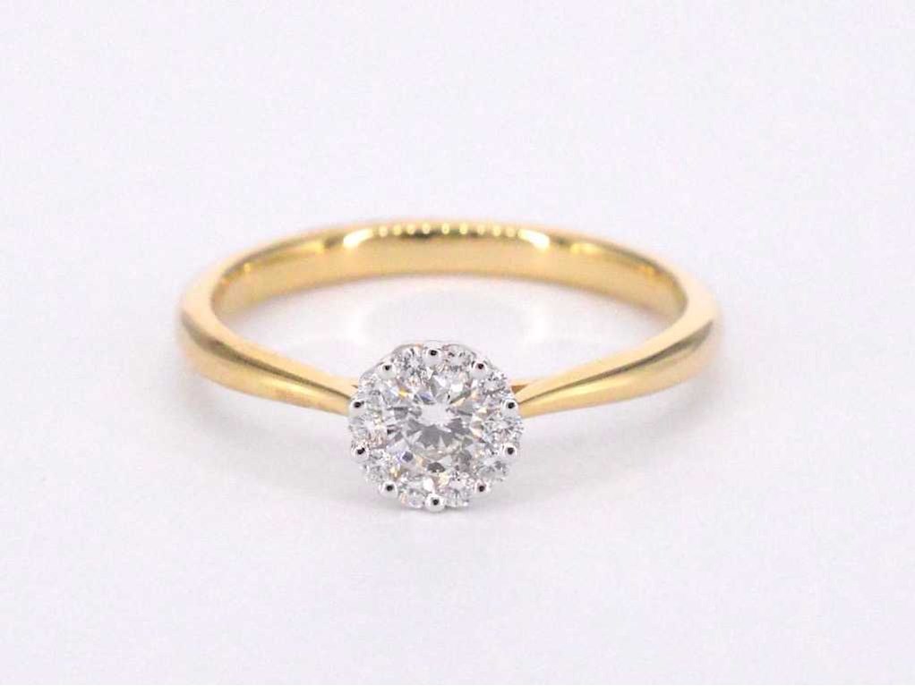 Samenvatting van gegevens Gouden ring met 0.35 carat diamant Diamant: Natuurlijk; Slijpvorm: Briljant geslepen; Gewicht (carat): 0.35 carat; Kleur: F-G; Zuiverheid: VS; Slijpkwaliteit: Zeer mooi; Juweel: Ring; Gewicht: 2.5 gram; Ringmaat (op maat gemaakt*): 53 (17 mm); Materiaal: 18K goud (750); Conditie: Nieuw; Verpakking: Luxe sieradendoos; Toelichting: De kwaliteit is overgenomen van het rapport behorend bij item. De waardebepaling is een beoordeling van een gecertificeerde diamantair, gebaseerd op consumentenprijzen.; Consumentenprijs: € 3.973,- Within 14 days Materiaal: Goud Voornaamste diamant: Natuurlijk Gewicht diamant: 0.35ct Totaal gewicht: 2.5g Keurmerk: 750 Kleur diamant: F-G Slijpvorm diamant: Briljant geslepen Slijpkwaliteit diamant: Zeer mooi Zuiverheidsgraad diamant: VS