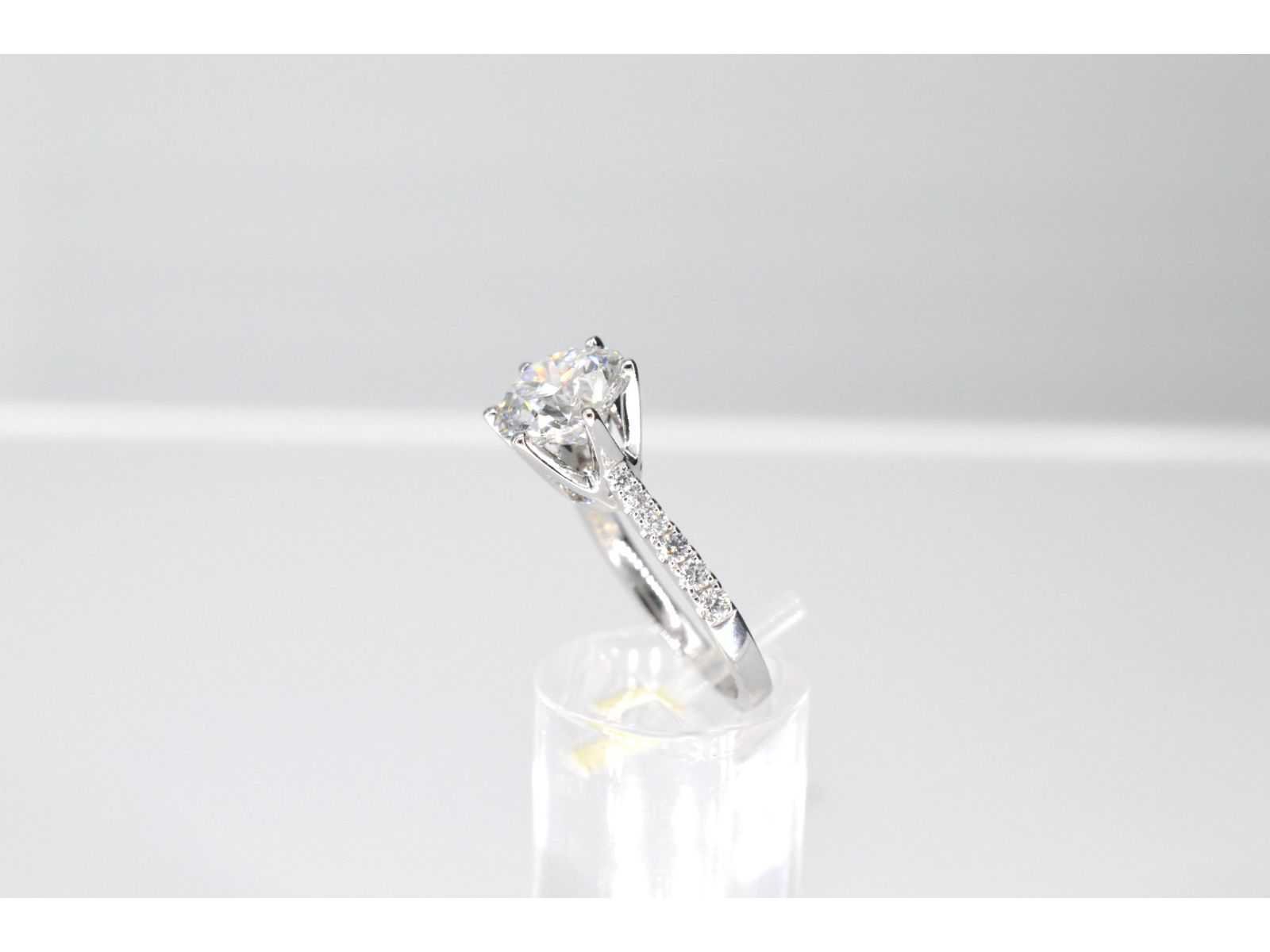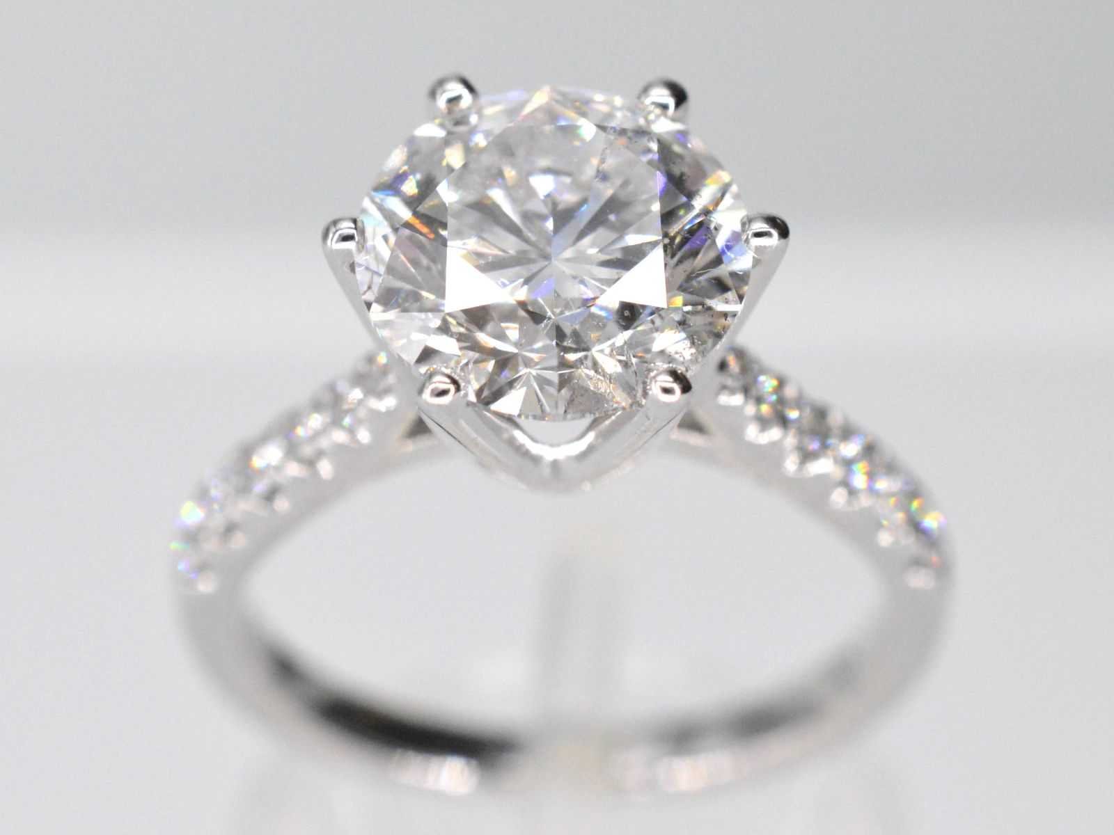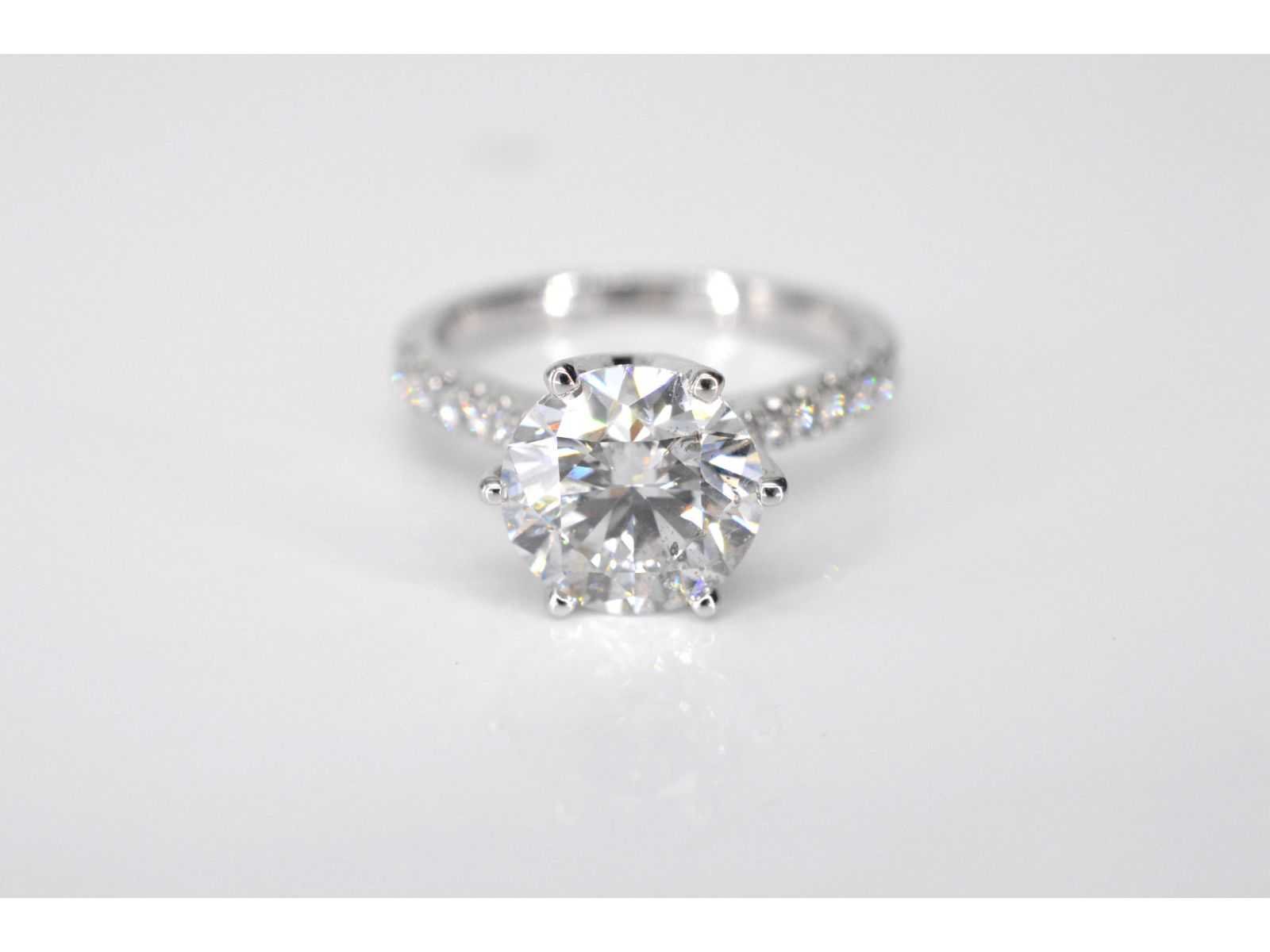 Samenvatting van gegevens Witgouden ring met een diamant van 3.01 carat Diamant: Natuurlijk; Aantal: 1 stuk; Slijpvorm: Briljant geslepen; Gewicht (carat): 3.01 carat; Kleur: G; Zuiverheid: SI2; Slijpkwaliteit: Excellent; Diamant (secundair): Kleine diamanten; Slijpvorm: Briljant geslepen; Gewicht (carat): 0.30 carat; Kleur: F-G; Zuiverheid: VS; Juweel: Ring; Gewicht: 4 gram; Ringmaat (op maat gemaakt*): 53 (17 mm); Materiaal: 18K goud (750); Conditie: Nieuw; Verpakking: Luxe sieradendoos; Toelichting: De kwaliteit is overgenomen van het rapport behorend bij item. De waardebepaling is een beoordeling van een gecertificeerde diamantair, gebaseerd op consumentenprijzen.; Consumentenprijs: € 99.250,- Within 14 days Materiaal: Goud Voornaamste diamant: Natuurlijk Gewicht diamant: 3.01ct Totaal gewicht: 4g Keurmerk: 750 Kleur diamant: G Slijpvorm diamant: Briljant geslepen Slijpkwaliteit diamant: Excellent Zuiverheidsgraad diamant: SI2