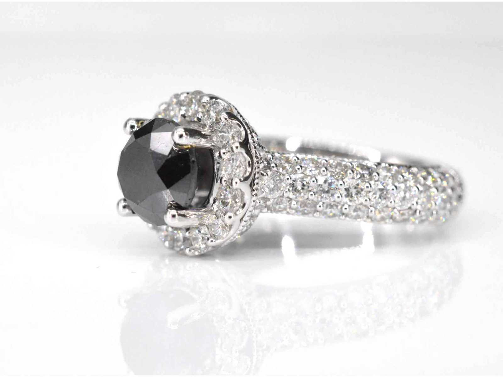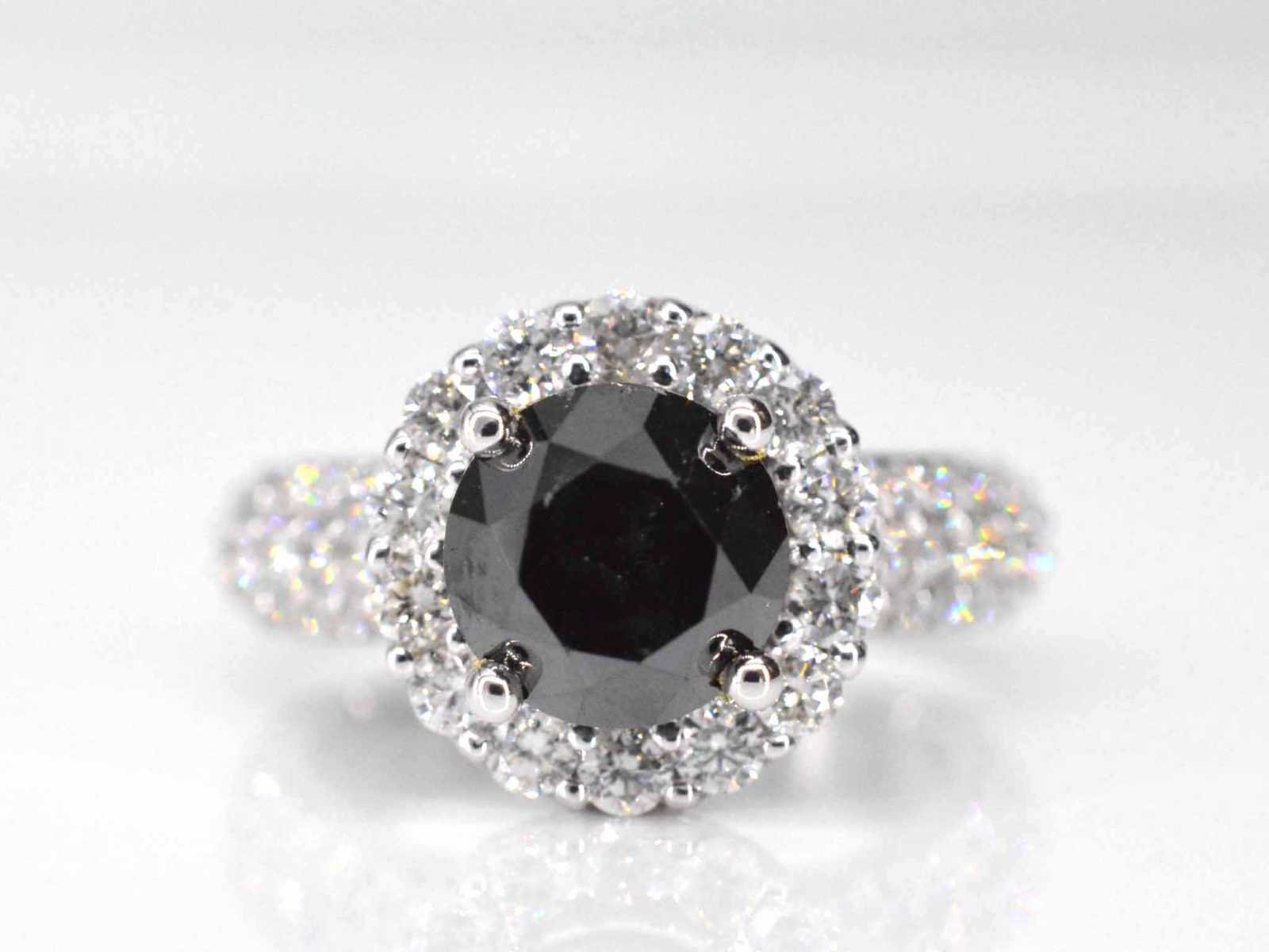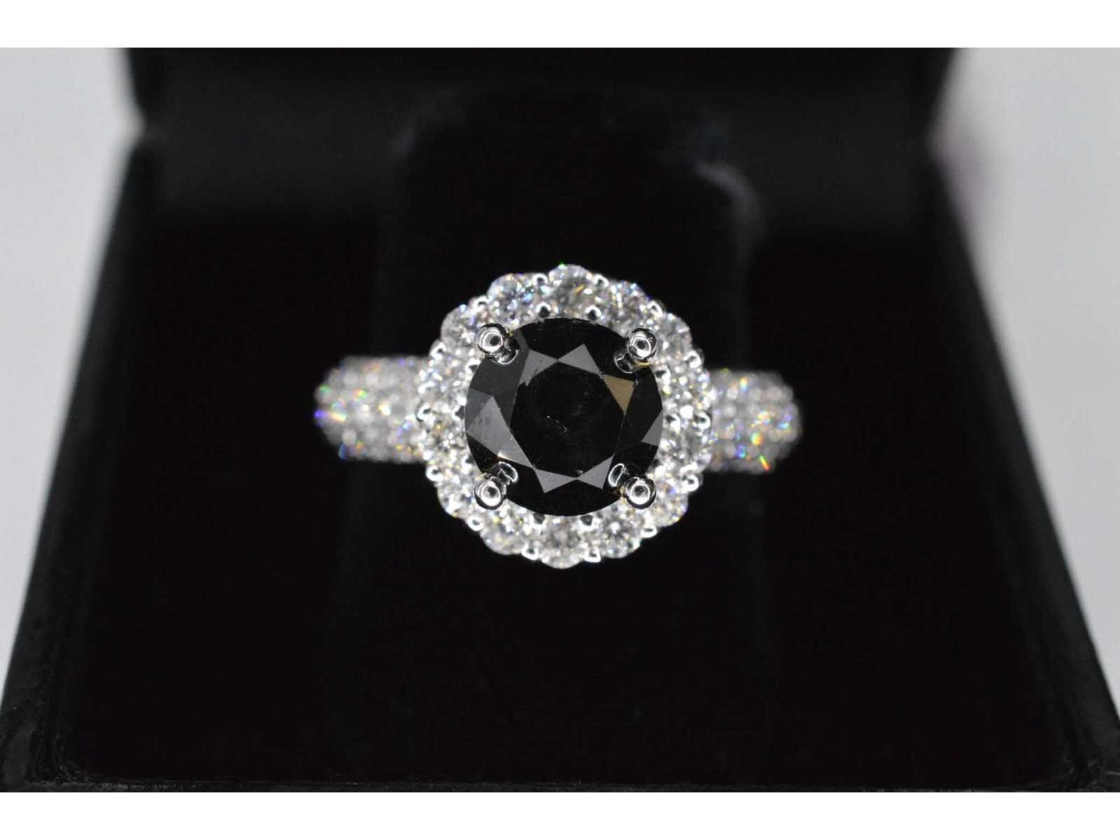 Samenvatting van gegevens Witgouden entourage ring met grote diamanten en een zwarte diamant Diamant: Natuurlijk; Aantal: 1 stuk; Slijpvorm: Briljant geslepen; Gewicht (carat): 2.50 carat; Kleur: Zwart; Zuiverheid: Opaque; Slijpkwaliteit: Zeer mooi; Diamant (secundair): Witte diamanten; Slijpvorm: Briljant geslepen; Gewicht (carat): 2.50 carat; Kleur: F-G; Zuiverheid: VS; Slijpkwaliteit: Very good; Juweel: Ring; Gewicht: 10.3 gram; Ringmaat (op maat gemaakt*): 53 (17 mm); Materiaal: 18K goud (750); Conditie: Nieuw; Verpakking: Luxe sieradendoos; Toelichting: De kwaliteit is overgenomen van het rapport behorend bij item. De waardebepaling is een beoordeling van een gecertificeerde diamantair, gebaseerd op consumentenprijzen.; Consumentenprijs: € 12.950,- Within 14 days Materiaal: Goud Voornaamste diamant: Natuurlijk Gewicht diamant: 2.50ct Totaal gewicht: 10.3g Keurmerk: 750 Kleur diamant: Zwart Slijpvorm diamant: Briljant geslepen Slijpkwaliteit diamant: Zeer mooi Zuiverheidsgraad diamant: Opaque