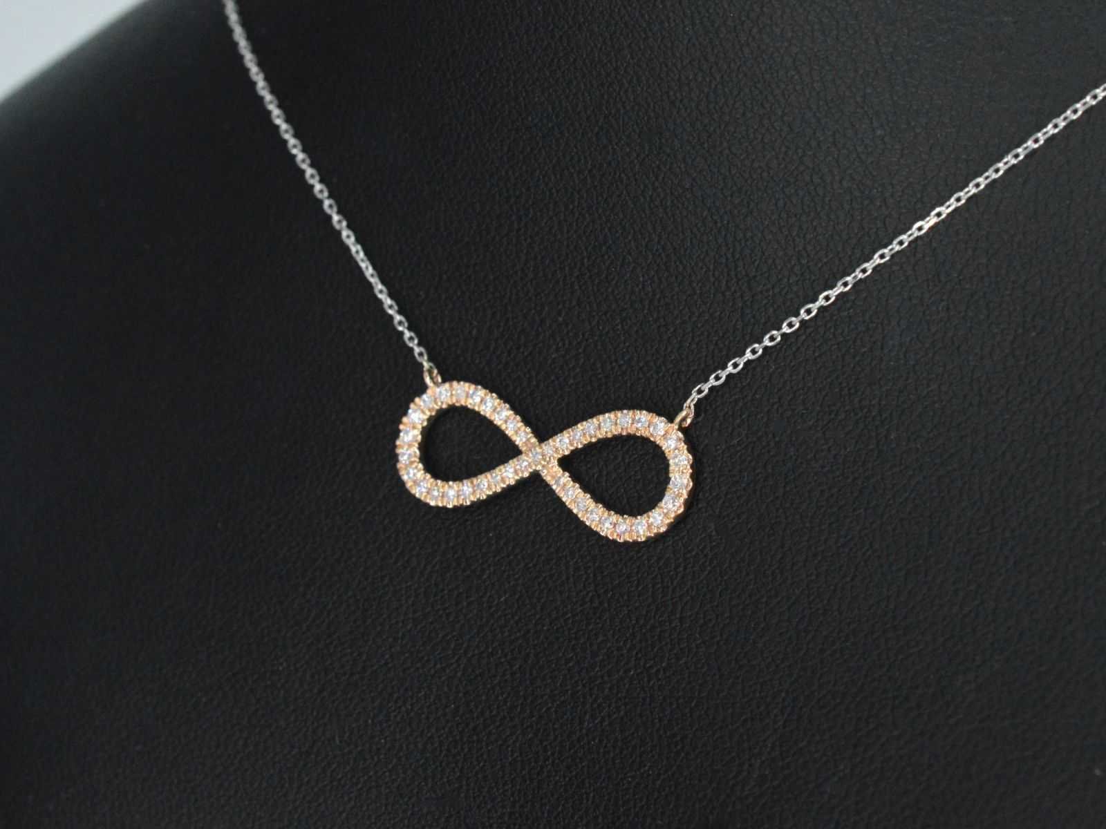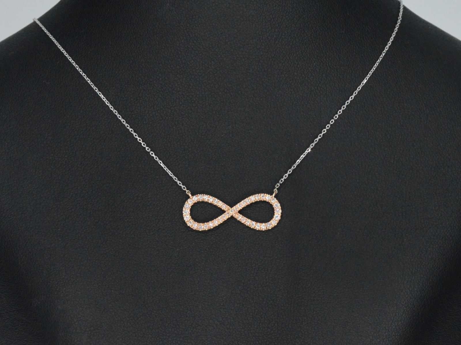 Samenvatting van gegevens Witgouden collier met een rosegouden diamanten infinity hanger Diamant: Natuurlijk; Aantal: 41 stuks; Slijpvorm: Briljant geslepen; Gewicht (carat): 0.30 carat; Kleur: Natuurlijke fancy roze; Zuiverheid: VS-SI; Slijpkwaliteit: Zeer mooi; Juweel: Hanger (incl. Ketting); Gewicht: 2.5 gram; Afmetingen/lengte: 42 - 47.5 cm (verstelbaar); Materiaal: 14 karaat (585); Conditie: Nieuw; Verpakking: Luxe sieradendoos; Toelichting: De kwaliteit is overgenomen van het rapport behorend bij item. De waardebepaling is een beoordeling van een gecertificeerde diamantair, gebaseerd op consumentenprijzen.; Consumentenprijs: € 2.643,- Within 14 days Voornaamste diamant: Natuurlijk Kleur diamant: Natuurlijke fancy roze Gewicht diamant: 0.30ct Slijpvorm diamant: Briljant geslepen Slijpkwaliteit diamant: Zeer mooi Zuiverheidsgraad diamant: VS-SI Totaal gewicht: 2.5g Keurmerk: 585