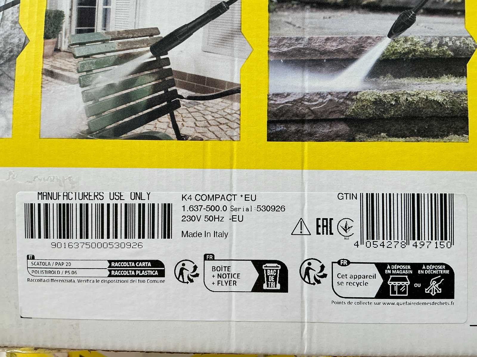 Product zit ongebruikt in de originele verpakking Merk: Kärcher Model: K4 compact Max. druk: 130bar Kleur: Geel