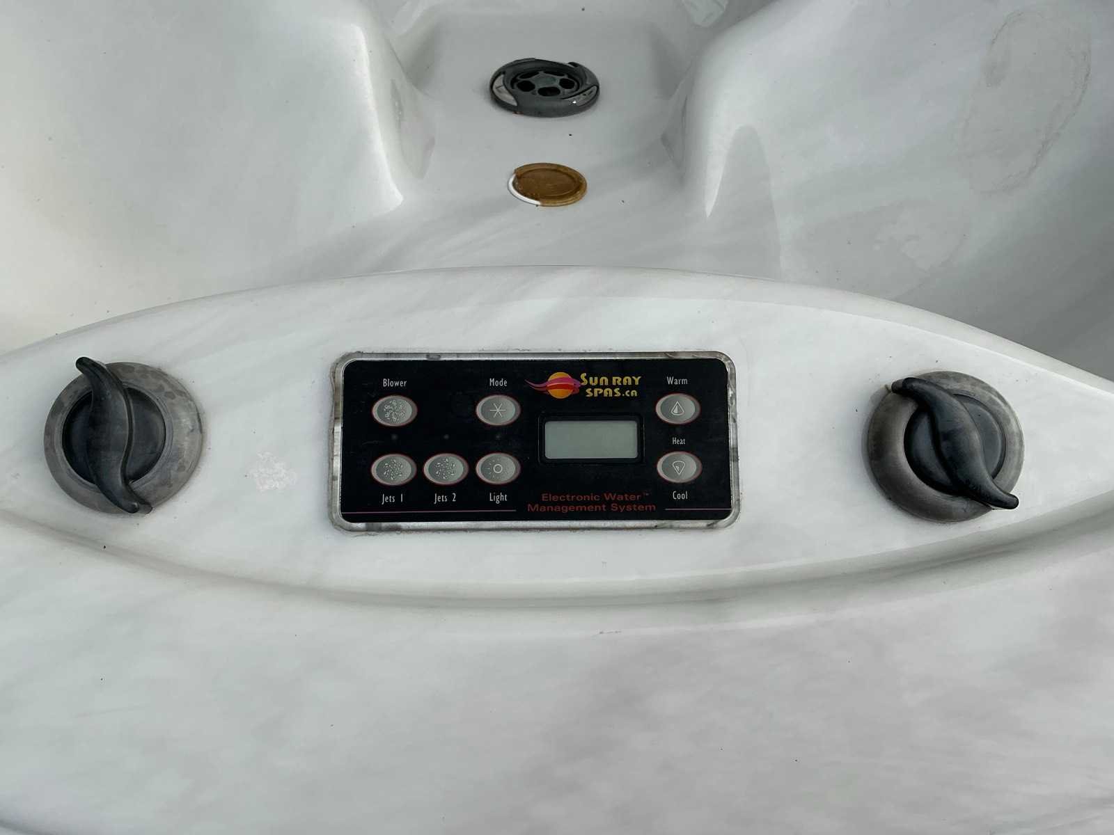 Werking en/of compleetheid onbekend. Inclusief cover (dek) Merk: Sunray spa Jets: 18 Aantal personen: 5 Kleur: Zwart/wit Lengte: 195cm Breedte: 195cm Hoogte: 95cm