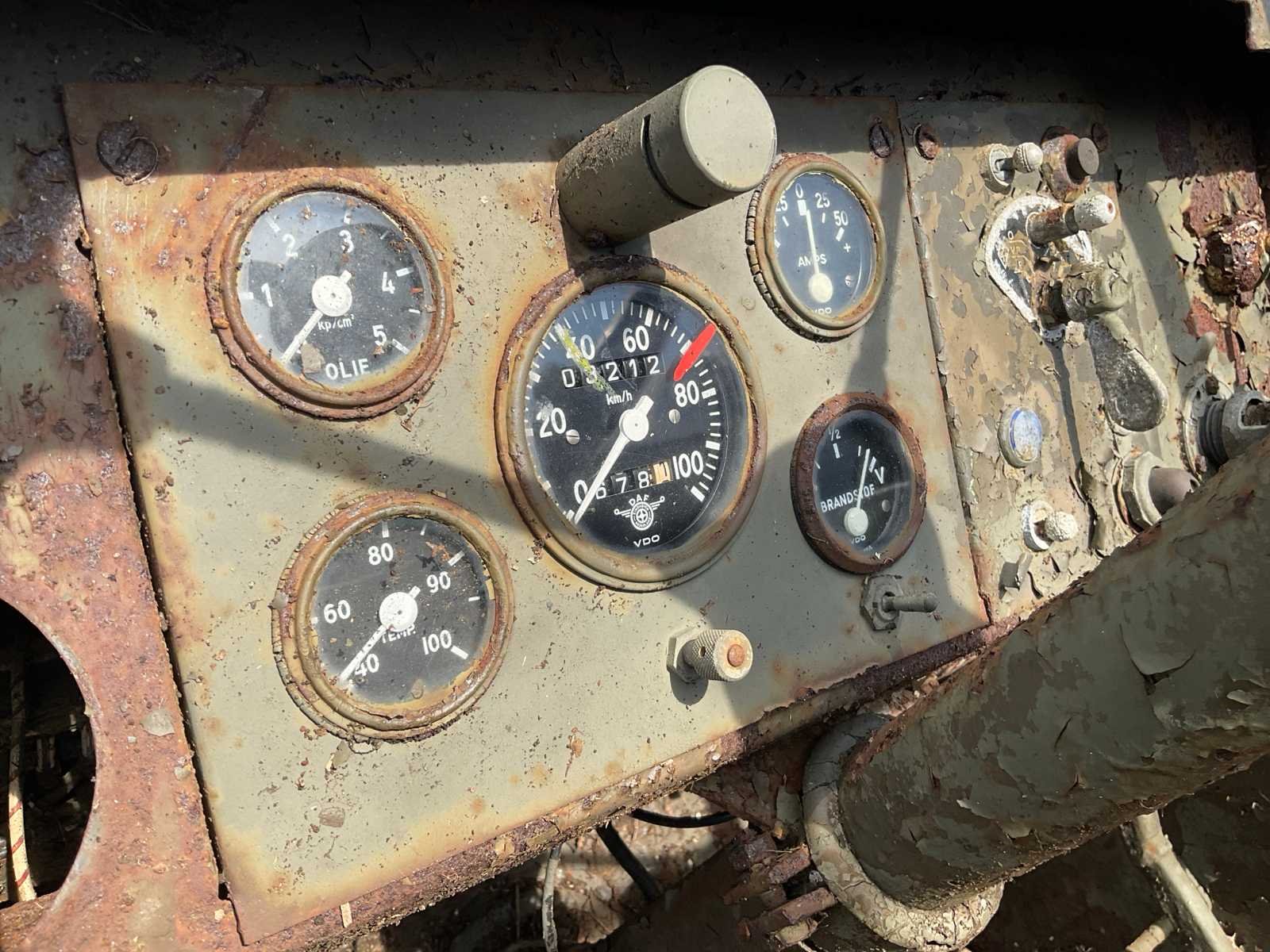 Restauratie object; niet geschikt voor de openbare weg; chassisnummer niet afleesbaar. Merk: DAF Type: YA 328 Kenteken: Geen Aantal assen: 3 Asconfiguratie: 6x6 Benzine: true Kilometerstand bij opname: 3212km