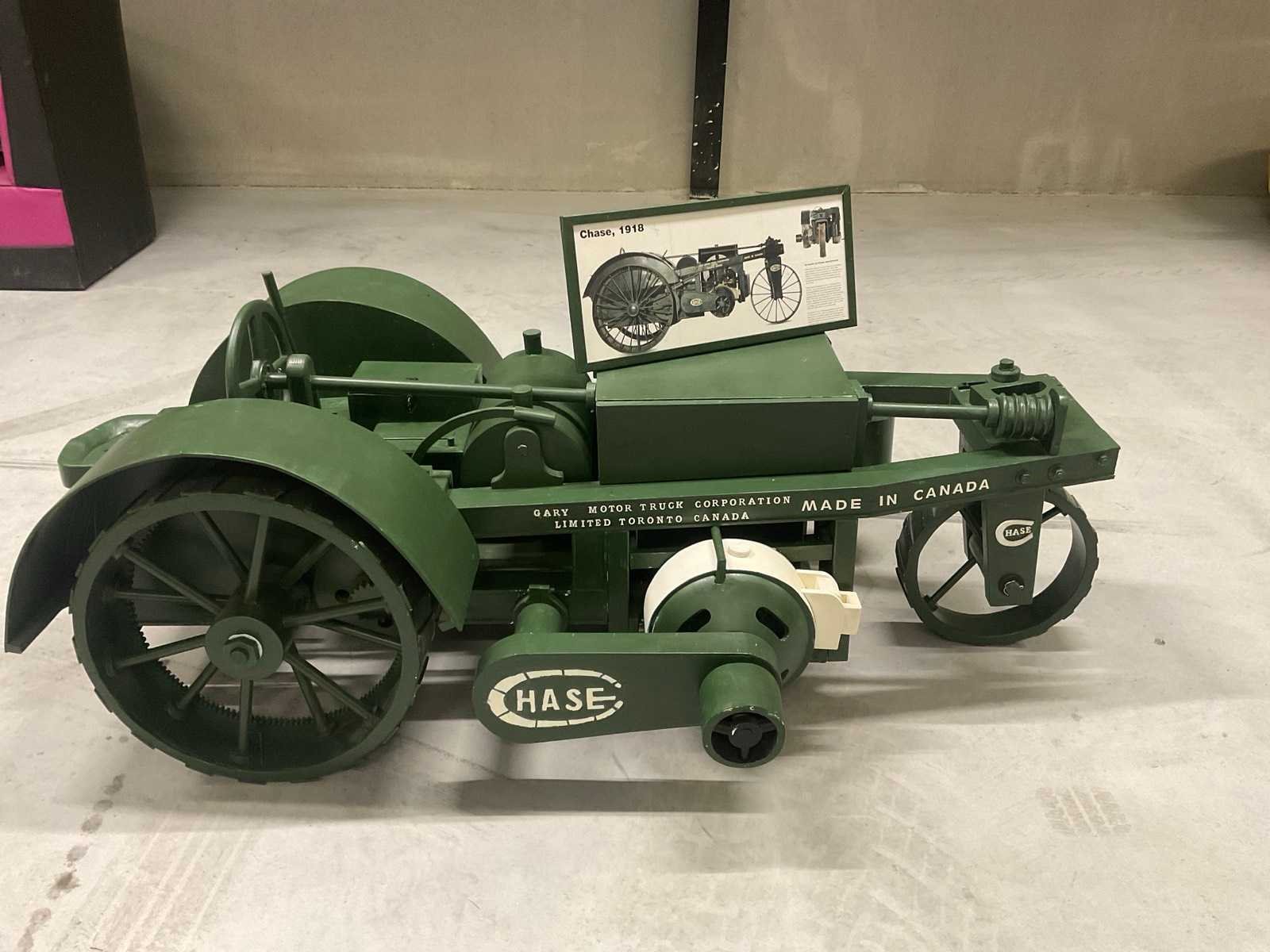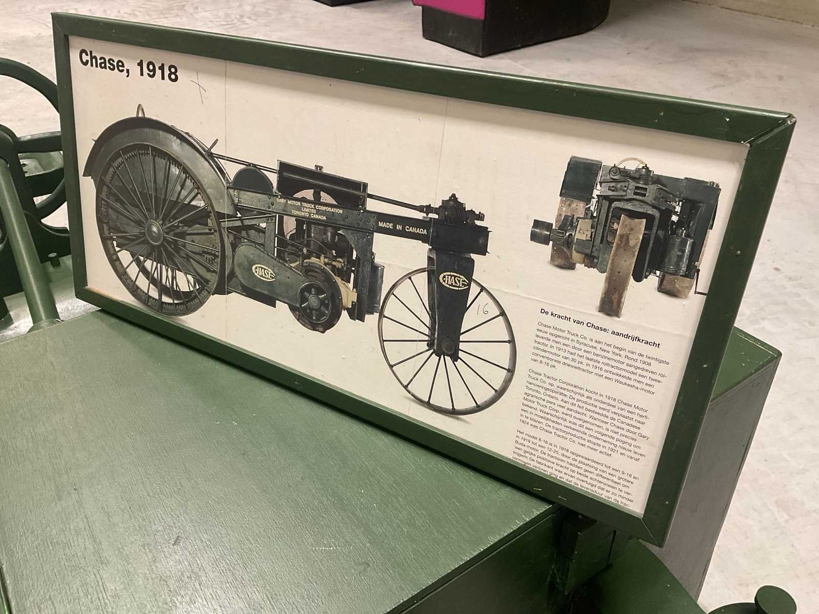 Handgemaakte tractor; Van de Nederlandse kunstenaar Rieko de Vries; Alles uit hout gesneden; Per object rond de 75 uur arbeid; incl boekje met foto’s bouwproces Merk: Chase Type: Kunstwerk