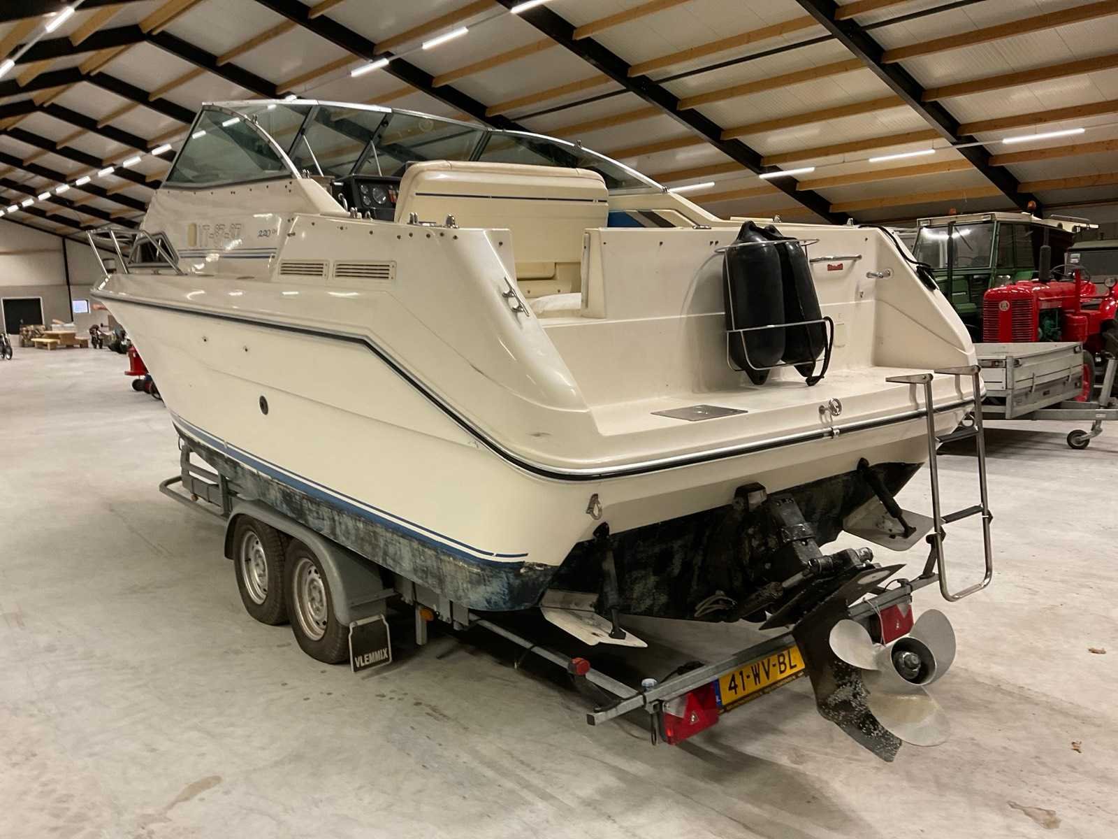 Maximum massa trailer 2700 kg, voorzien van neuswiel, 13-polige stekker, handmatige lier, uitschuifbare verlichting unit. Merk: Sea Ray Boats Type: 220 DA Brandstof: Diesel Bouwjaar: 1991 Registratie nummer: YT-67-37 Type motor: Mercruisen Aantal cilinders: 8 Vermogen: 132kW Afgelezen urenstand: 1225hr Toilet: true Trailer merk + type: Vlemmix Kenteken trailer: 41-WV-BL Chassisnummer trailer: XL9VTA0001441 Lengte: 780 Breedte: 240