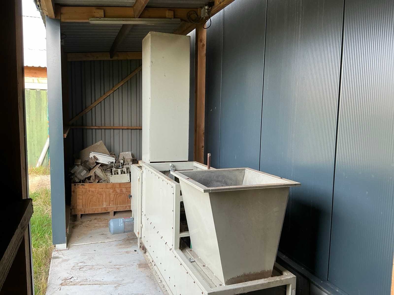 Afzak machine voor diverse korrels en grondstoffen; Incl diverse hulpstuken voor potgrond stamper; gedemonteerd Eigen gewicht: 7500kg Totale afmeting L: 5000mm Totale afmeting Breedte: 2750mm Totale afmeting Hoogte: 4400mm