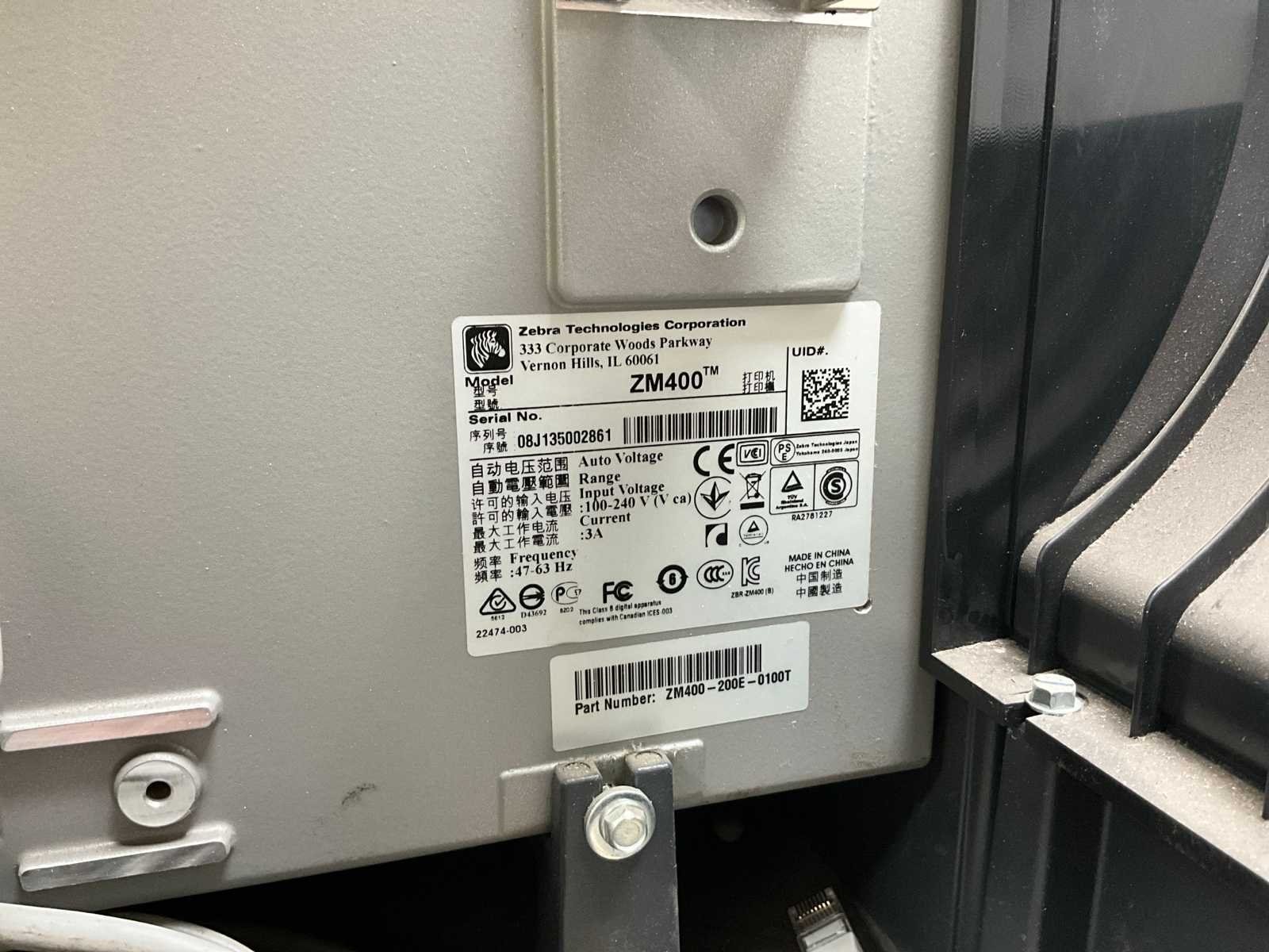 Merk: Zebra Model: Zm400
