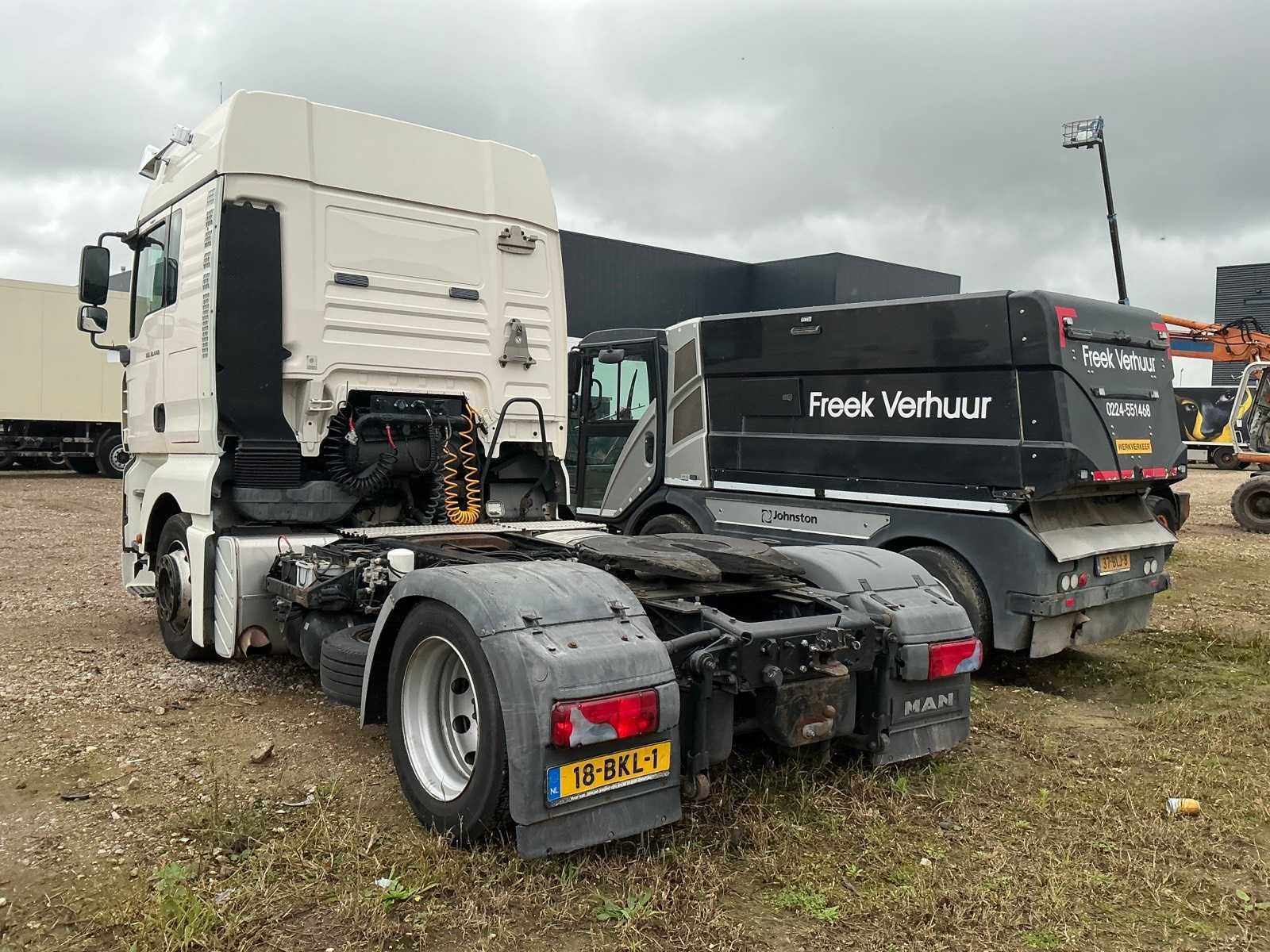 Volledig luchtgeveerd, eigen gewicht 7450kg, max massa 18000kg, max massa samenstel 40000kg, max opleggertrekgewicht 36550kg. Kenteken: 18-BKL-1 Merk: MAN Type: TGA 18.440 4x2 LLS-U Bouwjaar: 2007 Chassisnummer VIN: WMAH13ZZ47W094185 Cilinderinhoud: 10518cc Kilometerstand bij opname: 863591km APK vervaldatum: 2024-08-28 Datum eerste toelating: 2007-06-19 Datum eerste toelating (NL): 2018-01-31 Type transmissie: Automatisch Aantal assen: 2 Asconfiguratie: 4x2 Fuel Type: Diesel Laadvermogen: 10650kg Aantal sleutels: 1 Emissieklasse: Euro 4 Slaapcabine: true Aantal zitplaatsen: 2 No self drive export!: true
