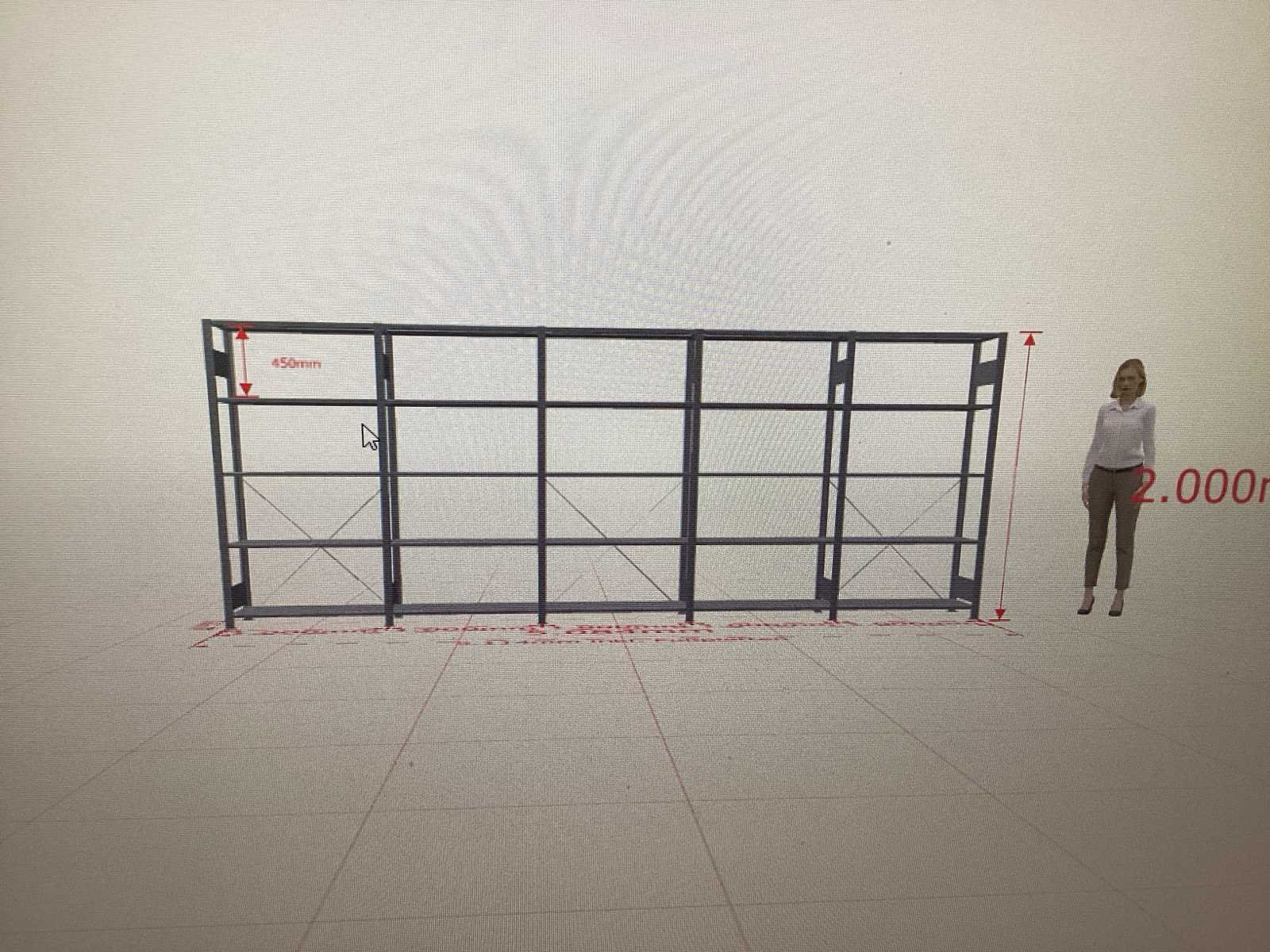 Merk: Schulte Sectie afm. b: 5114mm Sectie diepte: 536mm Sectie afm. h: 2000mm Aantal staanders: 12 Aantal legborden: 25