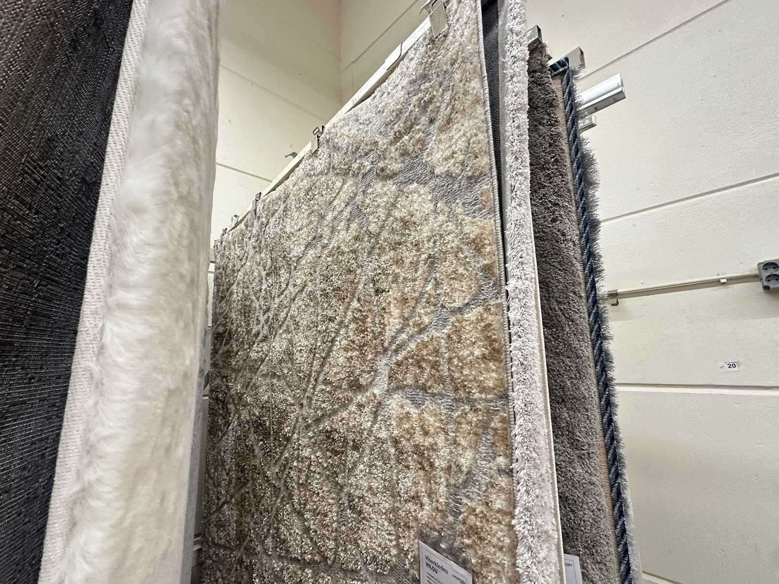 Deze partij bestaat uit diverse vloerkleden met verschillende afmetingen en kleuren. Exclusief rek. Retailwaarde circa € 16.000,-