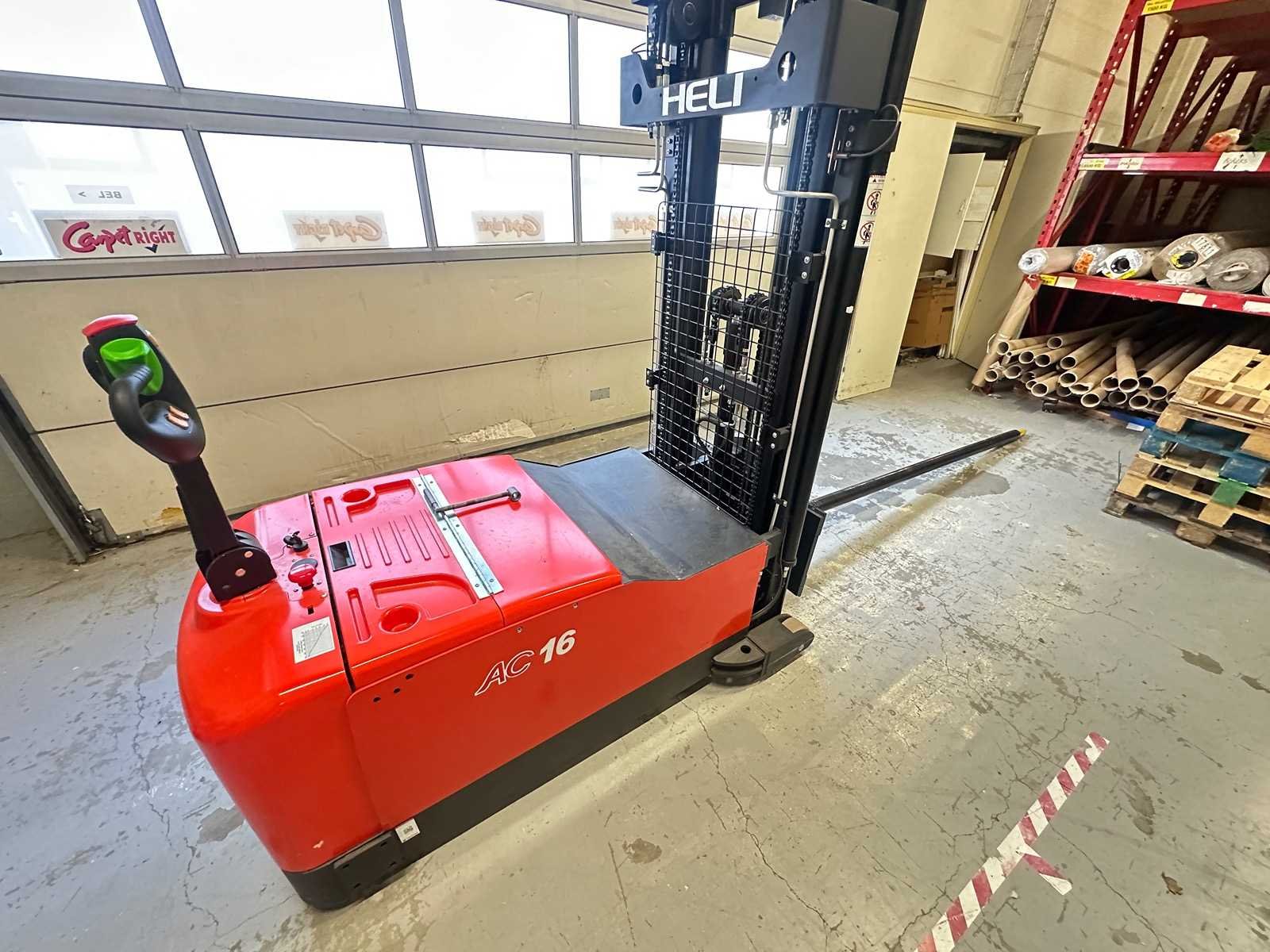 Deze electrische stapelaar is voorzien van een draagdoorn van 310 cm en is voorzien van oplader. Getest en goed werkend. Merk: Heli Type: AC16 Bouwjaar: 2023 Hefvermogen: 1600kg Hefhoogte: 4500mm Afgelezen urenstand: 48 Eigen gewicht: 1833kg Meerij stapelaar: true Accu lader: true