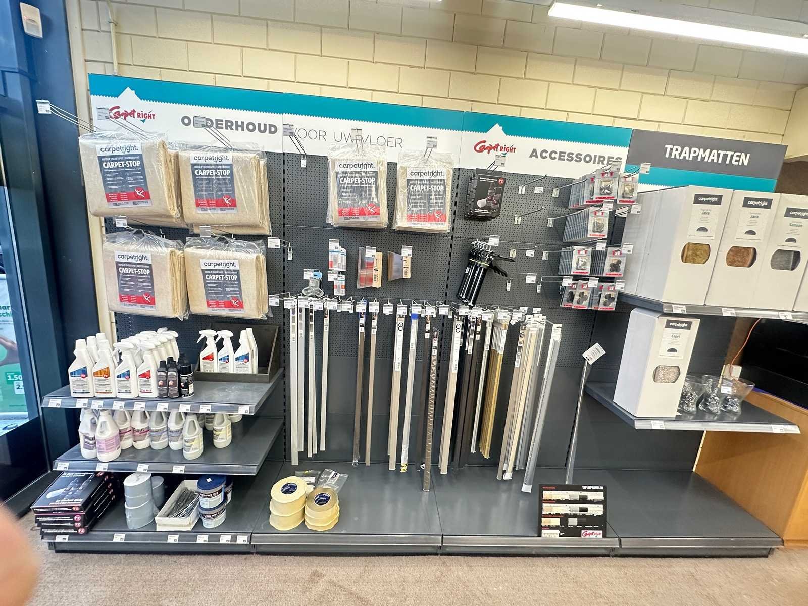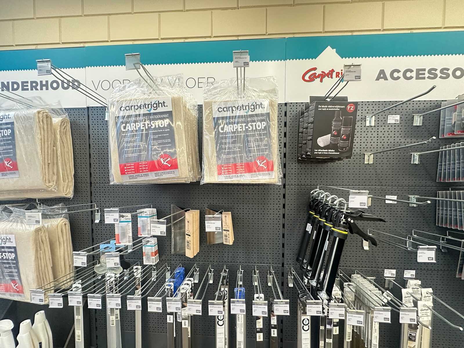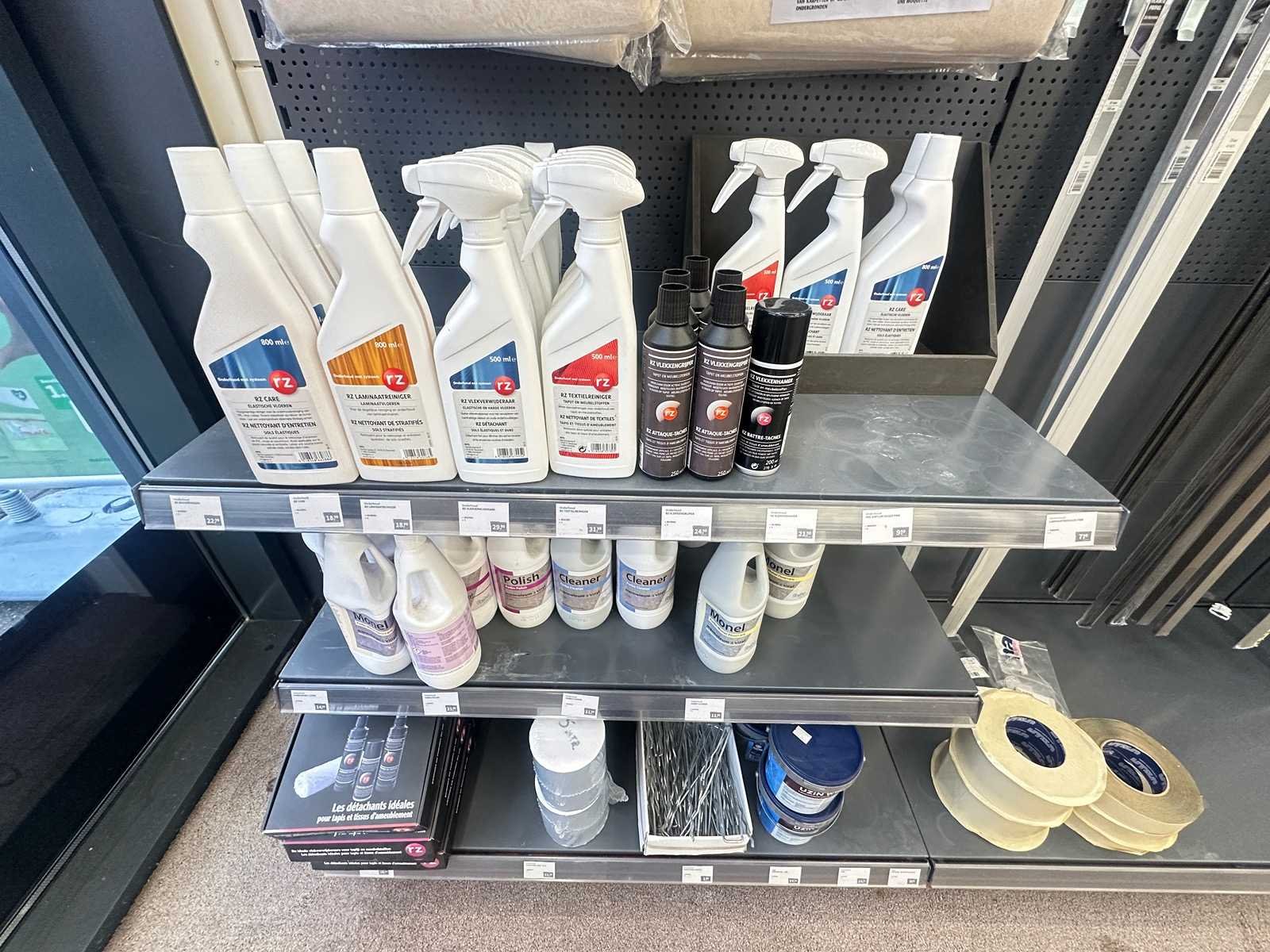 Deze partij bestaat uit onderhoudsproducten, ondervloeren, meubelvilten, bekleding voor traptrede en plinten.