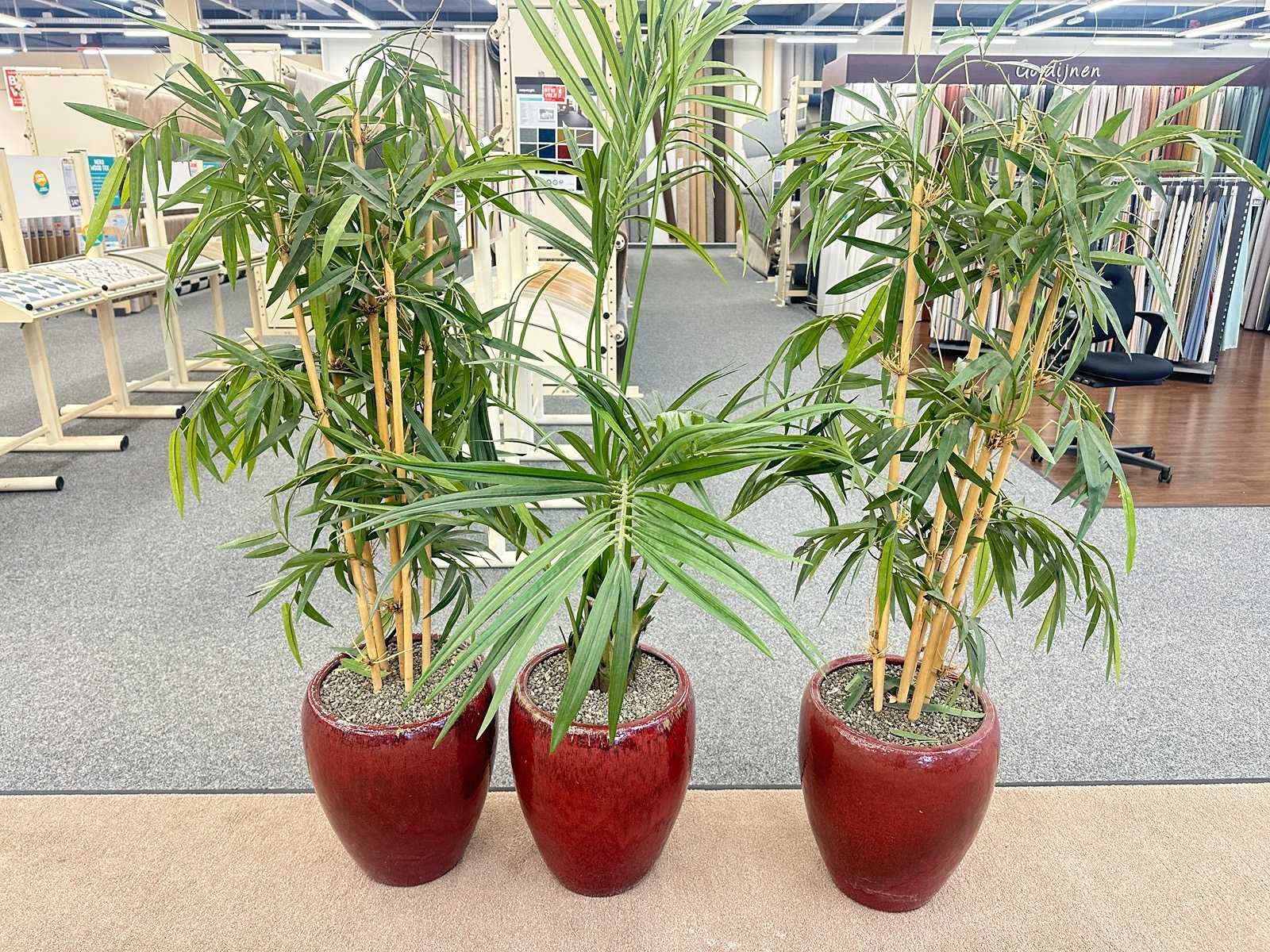 Bamboe kunstplant in stenen pot (3x)