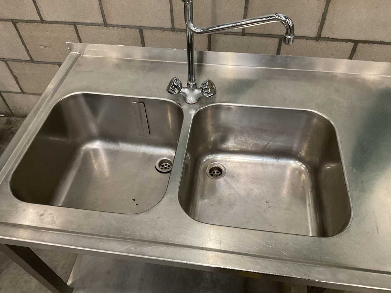 V.v. (2x) 40x40cm spoelbak en onderblad. Materiaal: RVS Aantal spoelbakken: 2pcs Spoelkraan: true Rvs: true Lengte: 150cm Breedte: 70cm Hoogte: 90cm