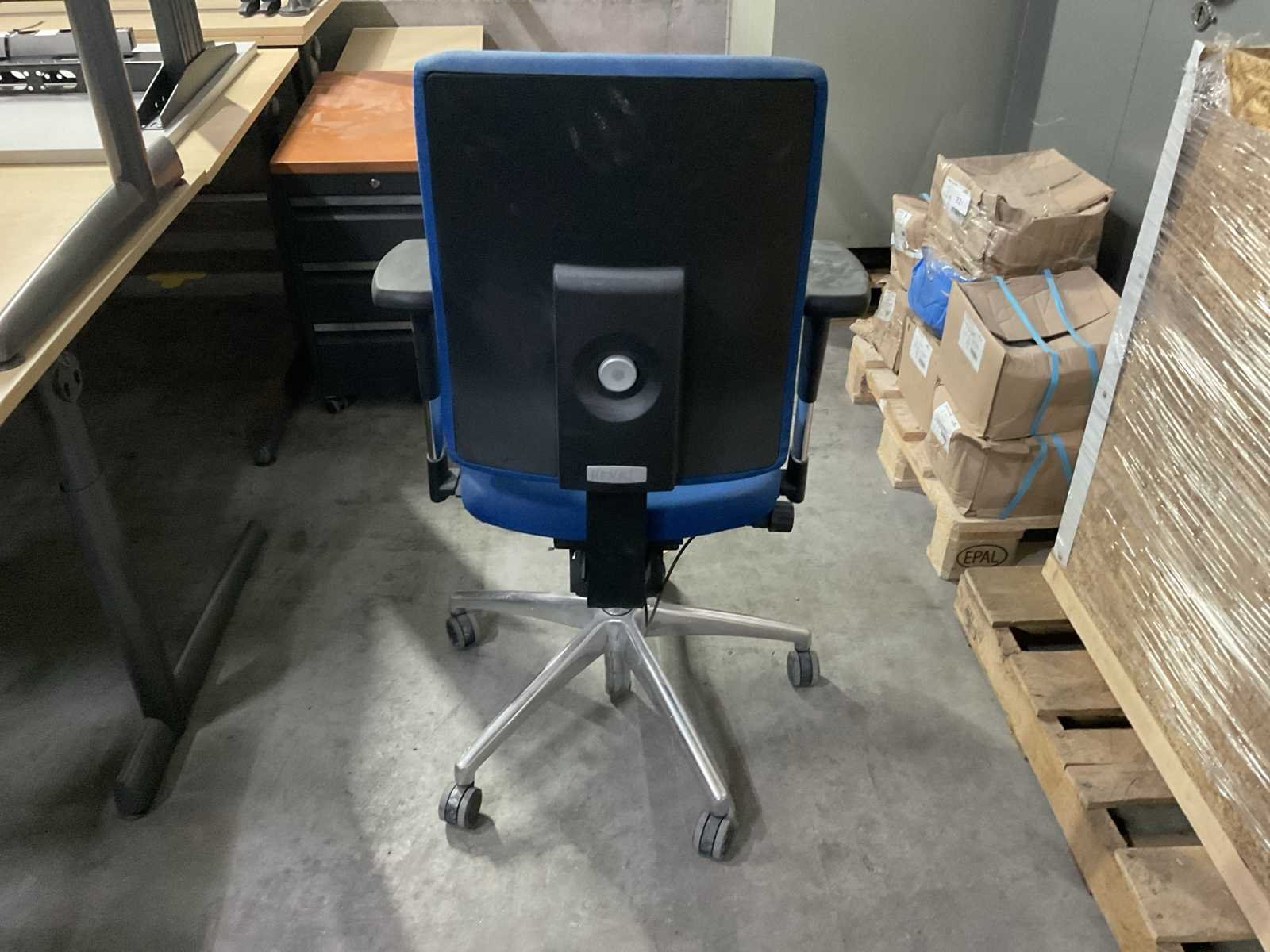 In vele standen verstelbaar. Kleur: Blauw gestoffeerd