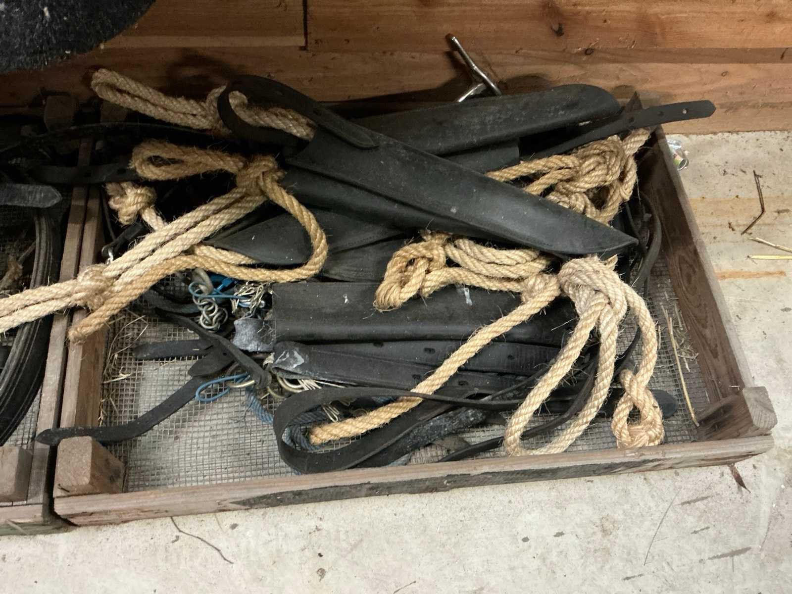 Waaronder 1x schoenleest, halters, zadeldragers, teugels etcetera, in en inclusief 6 houten kistjes