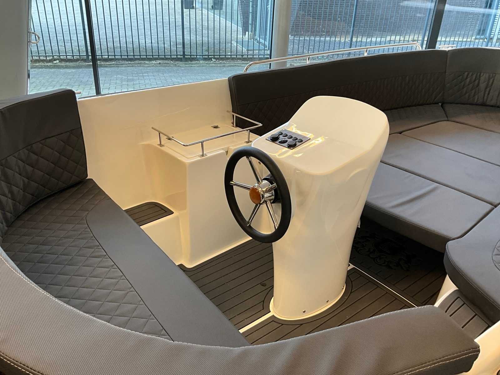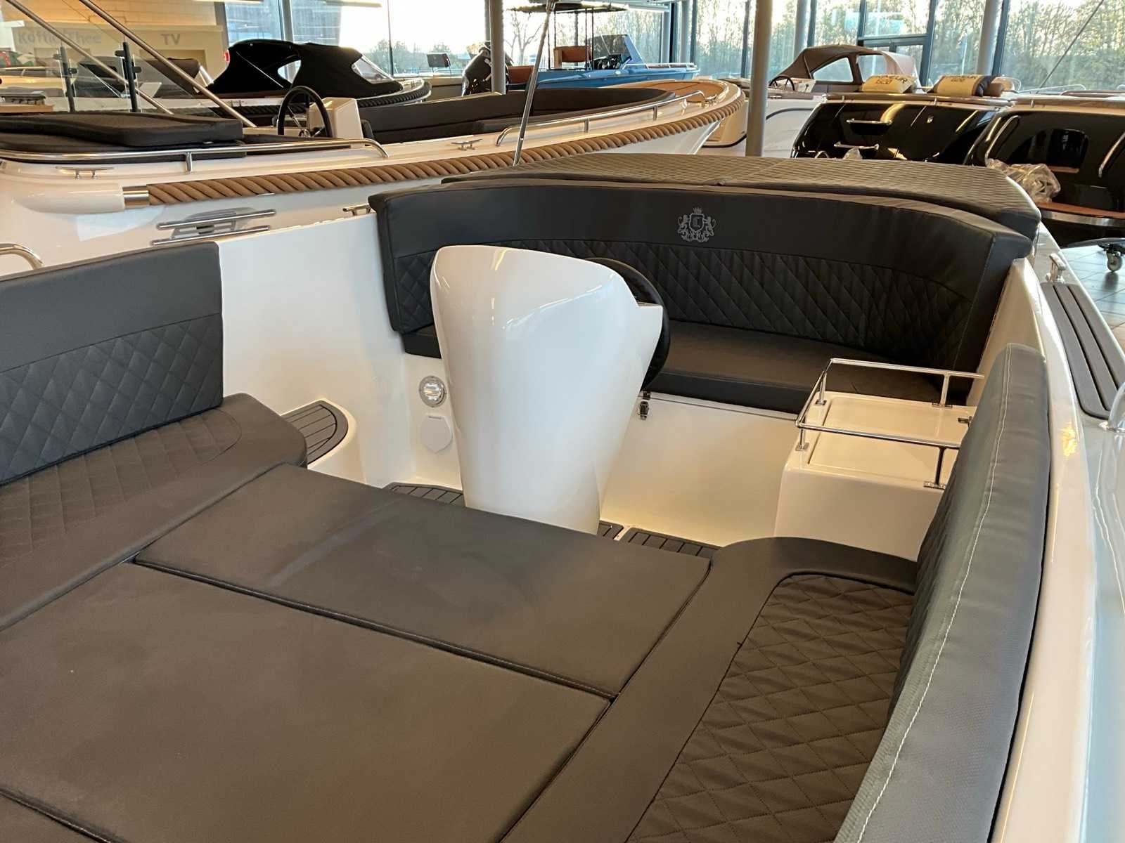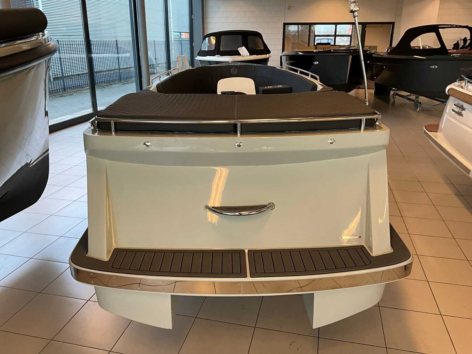 Diverse opbergvakken, Diamante kussenset: cabon / antraciet, Bunkussens Exclusive pack zonnedek met tafel Marin deck vloer volledig uitgevoerd Schakelpaneel met usb en 12 v navigatie verlichting en toplicht Stuurconsole, Stuurwiel, Bekerhouder, Automatische bilgepomp 12 l tank Merk: Chaloupe Type: 610 tender Rompmateriaal: Polyester Brandstof: Benzine Bouwjaar: 2023 Lengte over alles: 6.1m Breedte formaat: 2.2m Type motor: Suzuki DF20 Eigen gewicht: 570kg