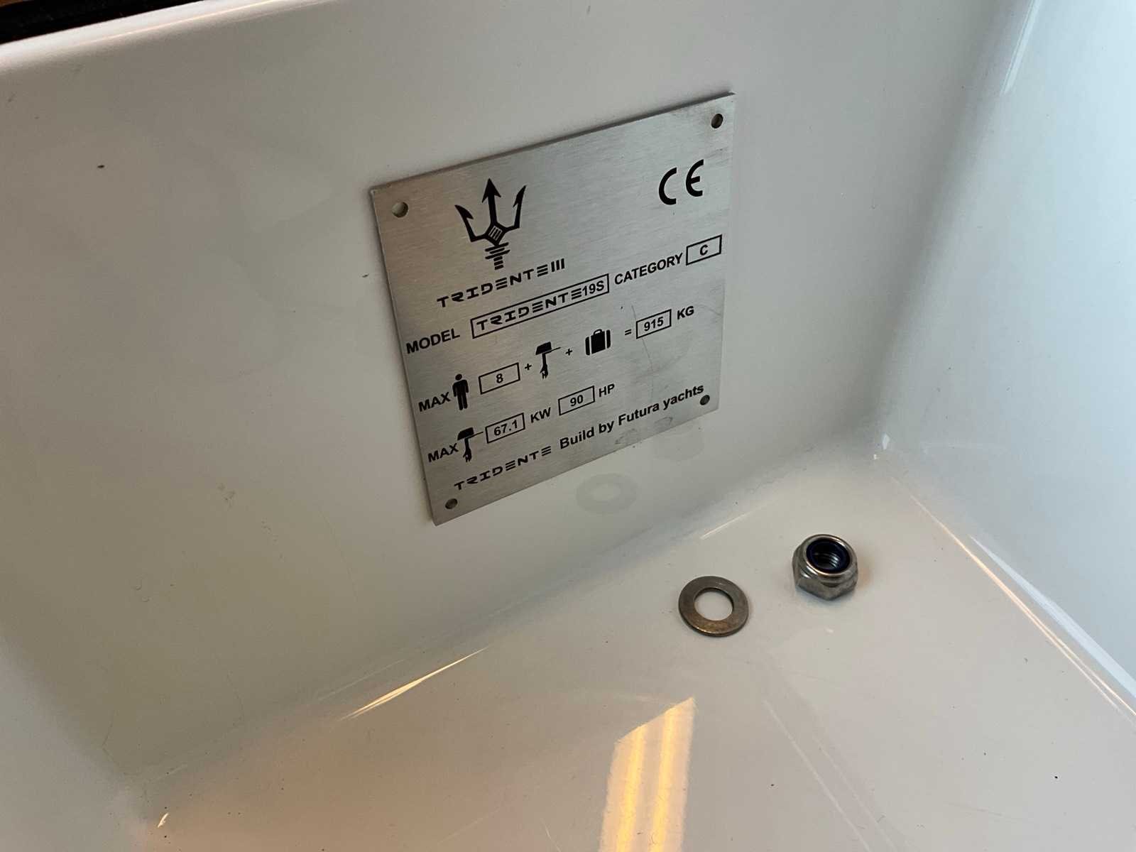 Diverse ruime opbergvakken, Luxe kussenset in Diamante kleur cognac, Luxe marine deck vloer volledig uitgerust, Exclusivepack zonnedek met tafel, Zonnedek voor en achterzijde, Zwemplateau’s, RVS Zwemtrap, Navigatie verlichting, Toplicht, USB 12V, Rubberenstootrand, Wc voorbereiding, Stuurconsole, Stuursysteem met stuurwiel, Ankerluik, 3 x RVS kikkers per zijde en traileroog Merk: Tridente Type: 19S Rompmateriaal: Polyester Brandstof: Benzine Bouwjaar: 2023 Lengte over alles: 5.95m Breedte formaat: 2.35m Type motor: Suzuki DF15