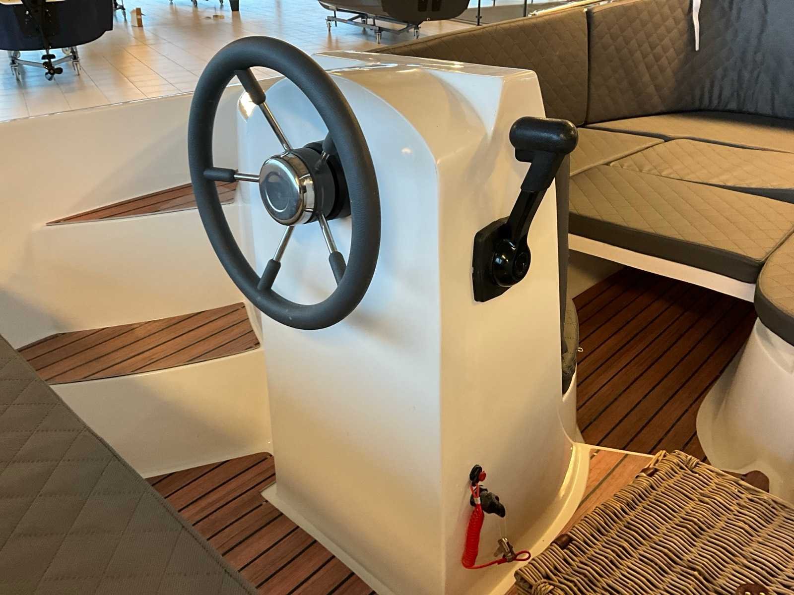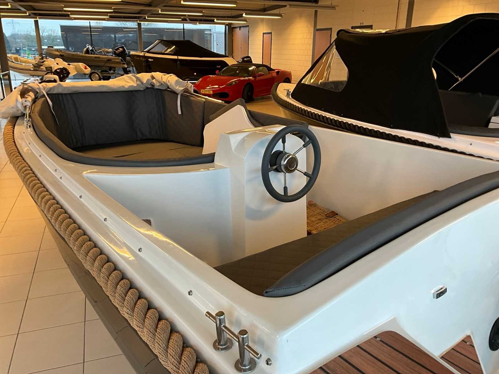 Kleur Zwart, hpl vloer Polyester dek kleur wit, Ankerluik afsluitbaar op voordek, Buiskap met afdekzeil kleur: zand, Kussenset & zonnedek in kleur antraciet , Grote opbergruimten onder zitbanken, Zelflozing naar bilge, automatische bilgepomp, RVS package, Navigatie verlichting & Toplicht, 12 volt aansluiting, Accu, accubak, ingebouwde hoofdschakelaar, RVS boegoog, RVS kikkers (6 x), RVS bekerhouders, Stuurconsole, RVS stuurwiel, Gashende, 12l tank Door inruil verkregen, nieuwe motor ! Merk: Chaloupe Type: 490 tender Rompmateriaal: Polyester Brandstof: Benzine Bouwjaar: 2022 Lengte over alles: 4.9m Breedte formaat: 2m Type motor: Suzuki DF9,9 Eigen gewicht: 570kg