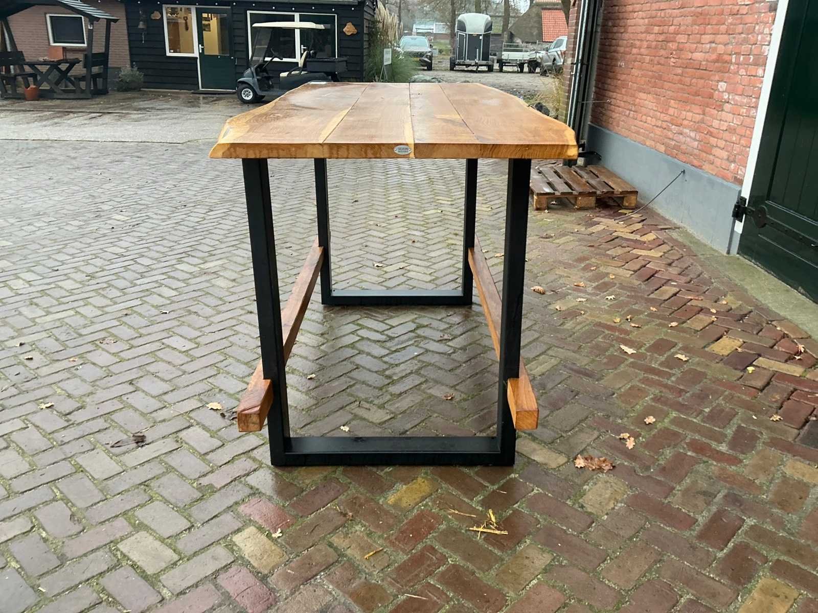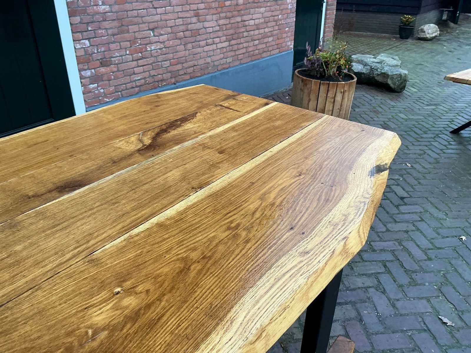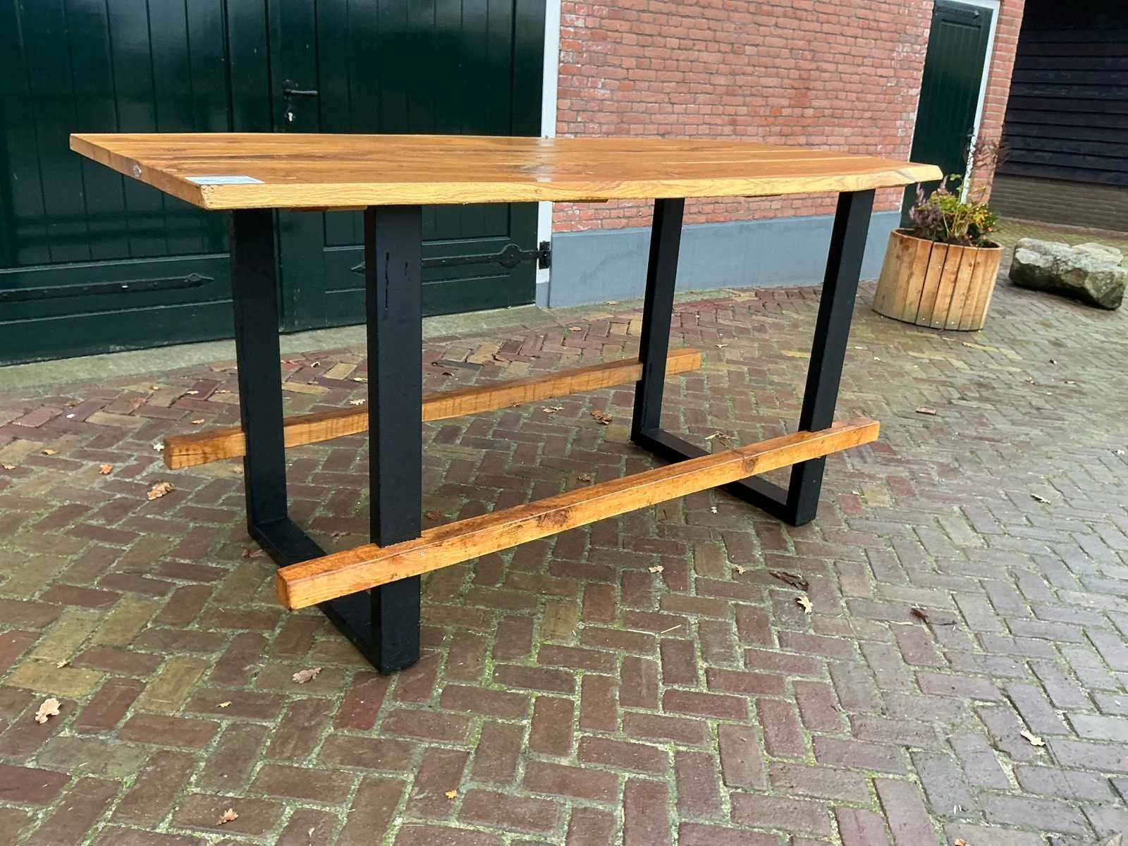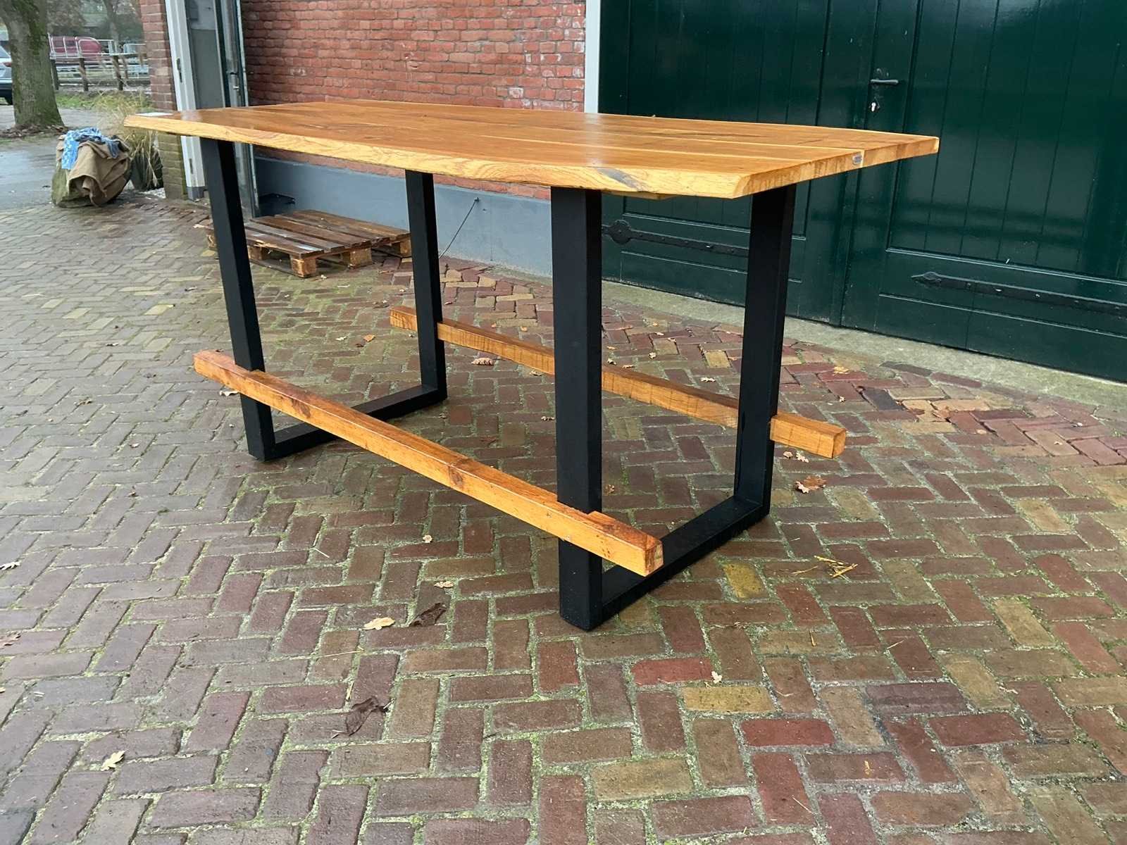 Zithoogte: 106cm. Blad dikte: 3,5cm. Voorzien van: U-profiel onderstel Merk: Silvijn Meubels Materiaal: Hout / Metaal Lengte: 222cm Breedte: 95cm Hoogte: 110cm