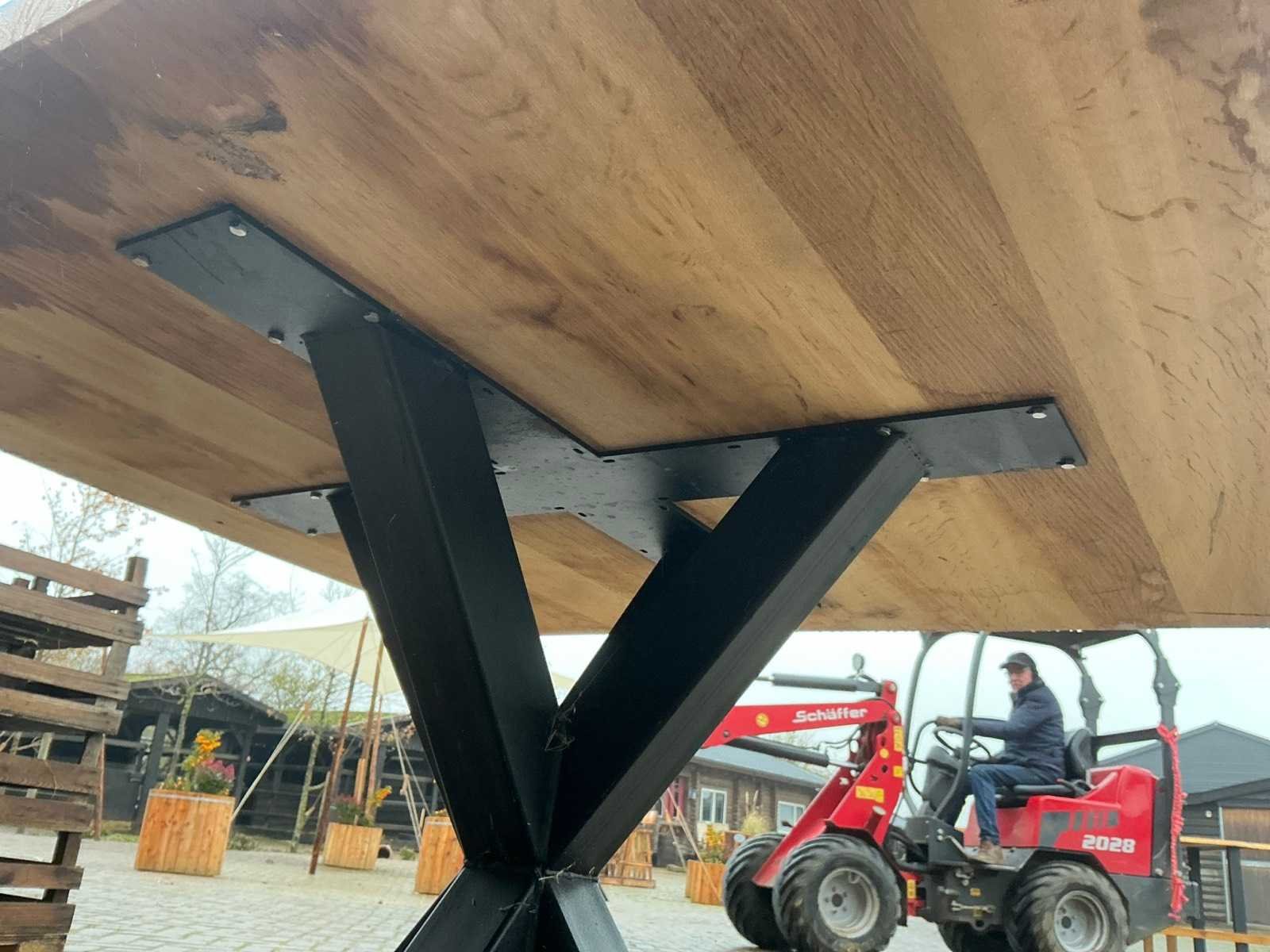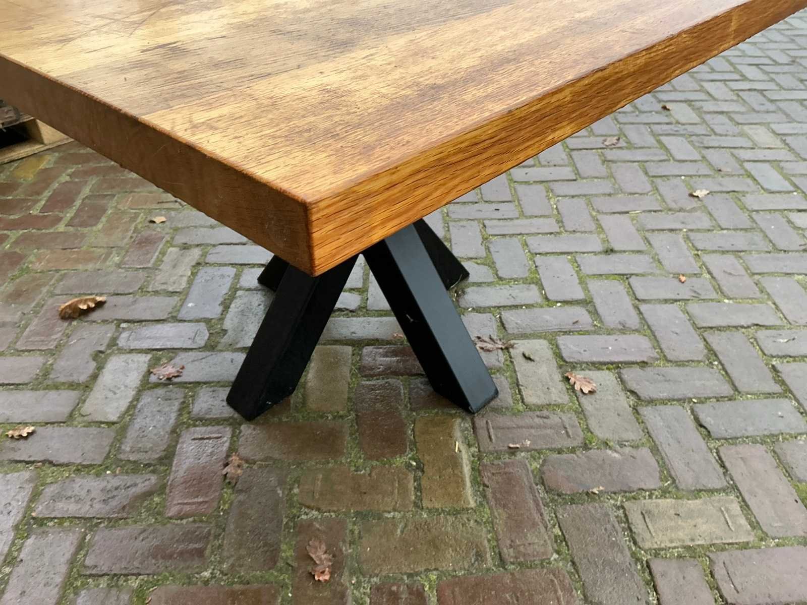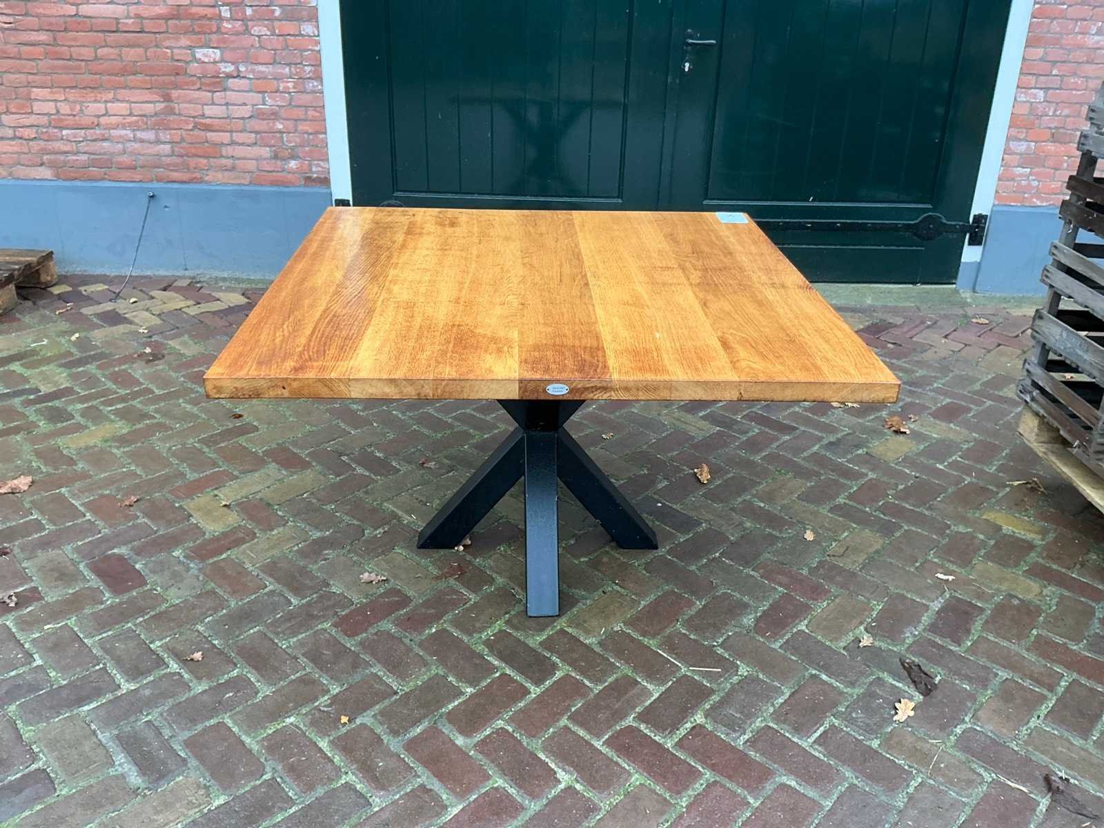 Zithoogte: 70cm. Voorzien van: Matrix onderstel Vorm: Vierkant Lengte: 120cm Breedte: 120cm Hoogte: 74cm Materiaal: Hout / Staal