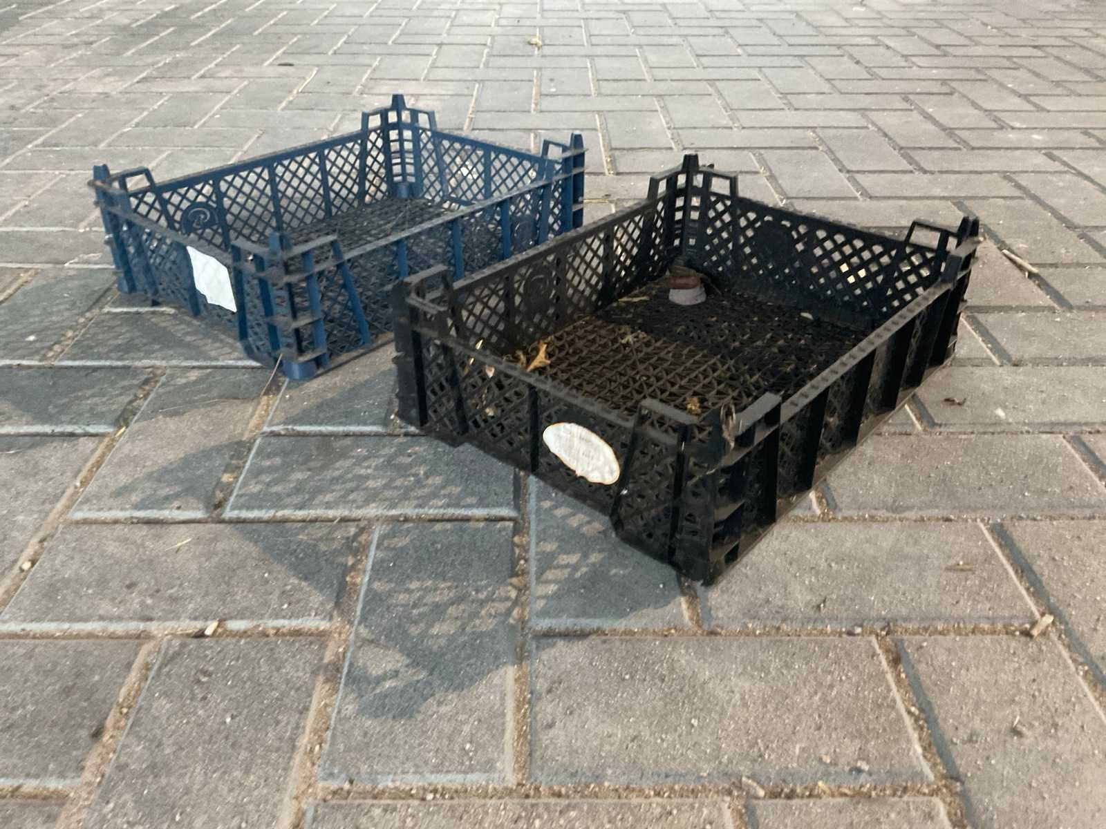 Kleur: Blauw en Zwart. Op 4 pallets. Afmeting l: 400mm Afmeting b: 300mm Afmeting h: 110mm