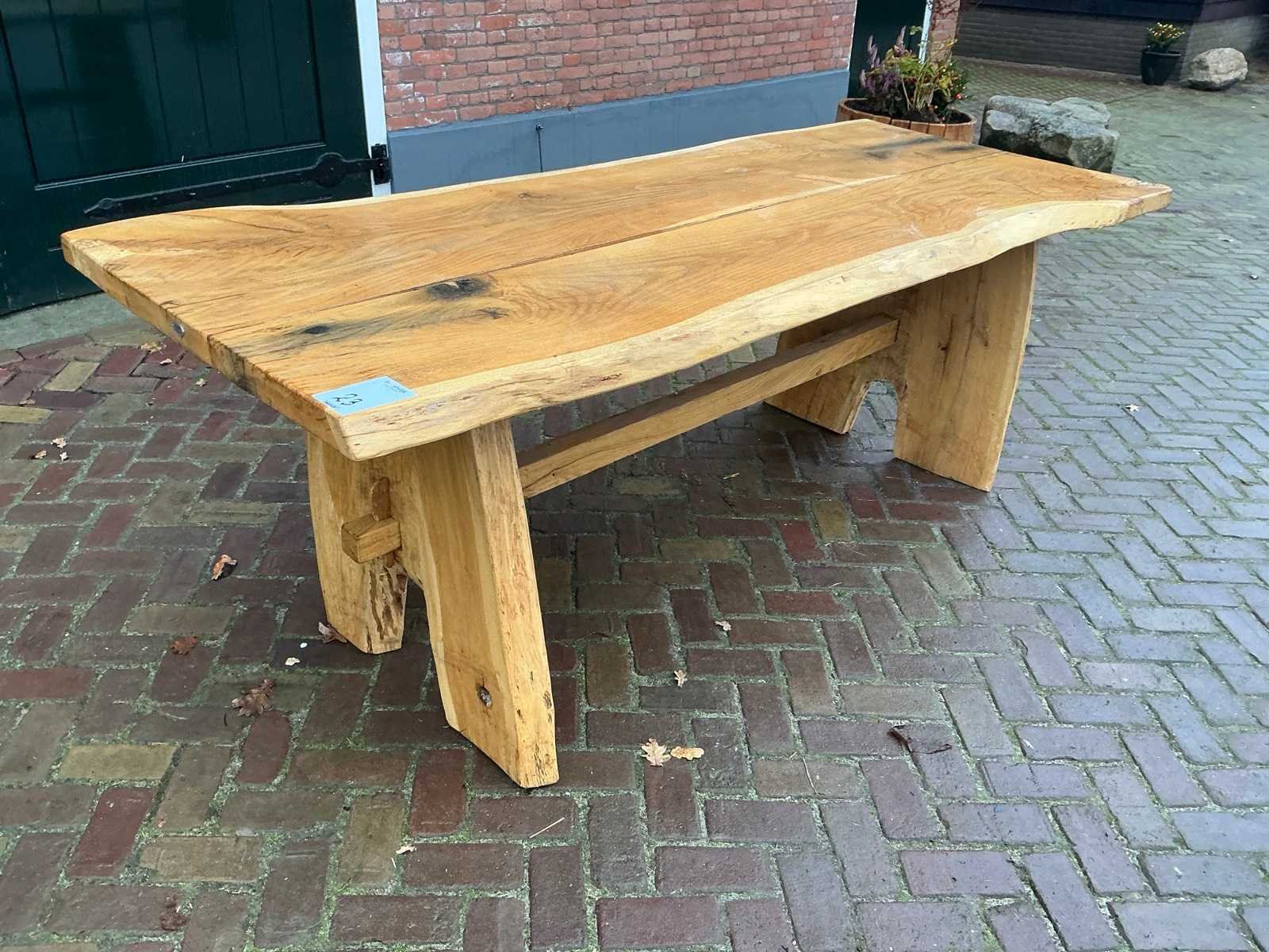 Zithoogte: 75cm, Bladdikte: 5cm. Voorzien van: Houten onderstel. Merk: Silvijn Wonen Vorm: Rechthoek Lengte: 223cm Breedte: 92cm Hoogte: 80cm Materiaal: Hout