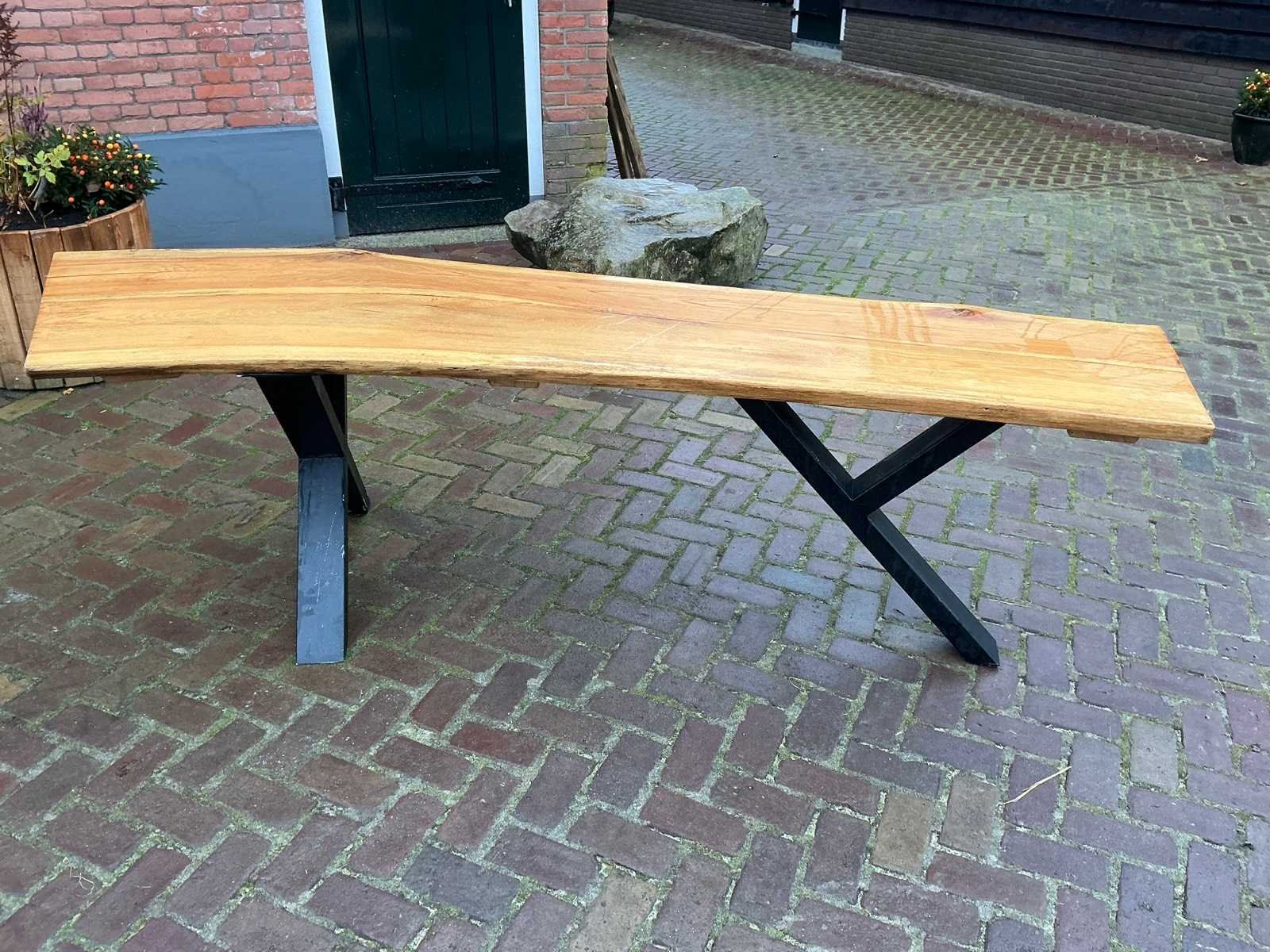 Bladdikte 4cm, voorzien van stalen X-Y onderstel Lengte: 240cm Breedte: 90cm Hoogte: 72cm