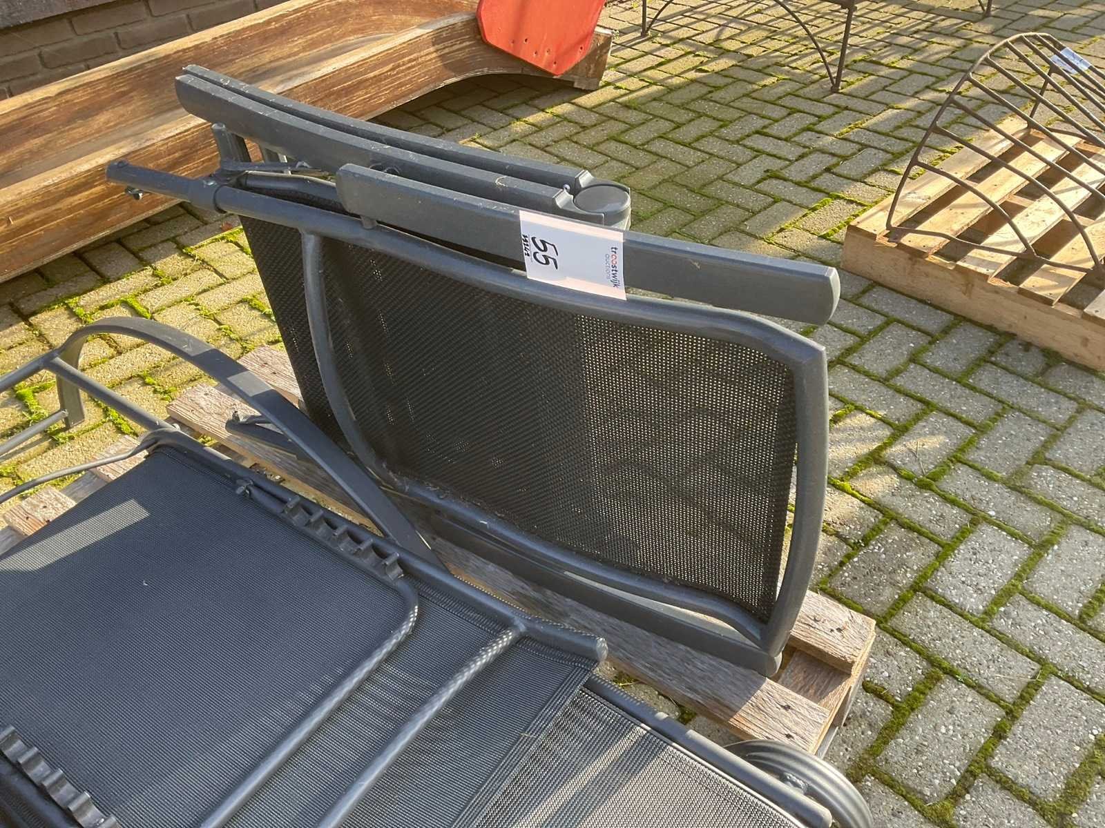 Bestaande uit: (1x) ligbed, (4x) klapstoel grijs, (1x) klapstoel zwart.