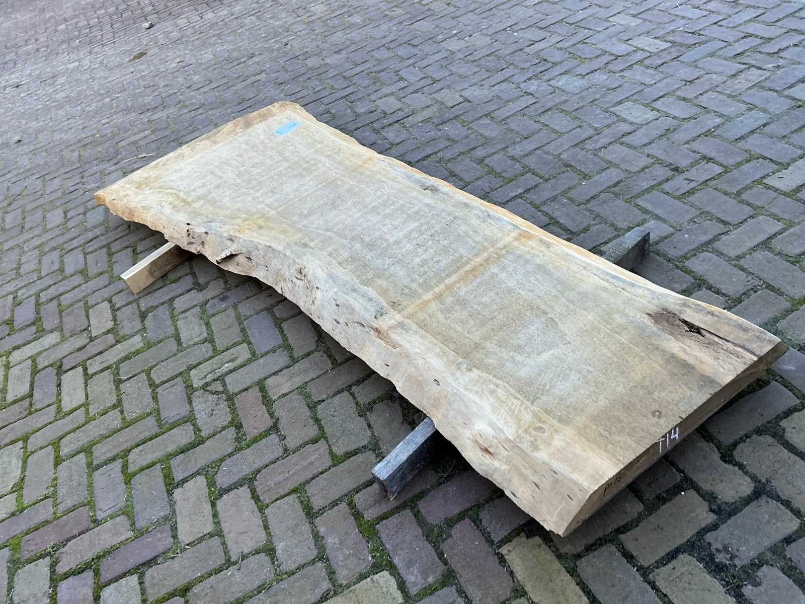 Afmeting totaal circa 217x87cm, bladdikte circa 6 cm.