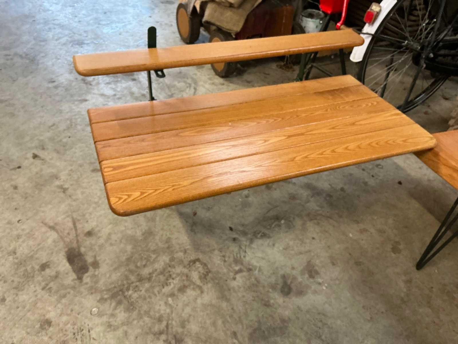 Opklapbaar, lengte circa 90cm., kan ook als wandopklaptafel gebruikt worden