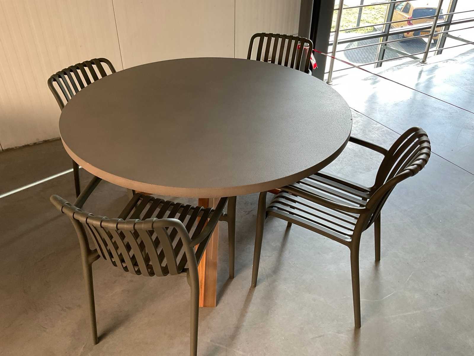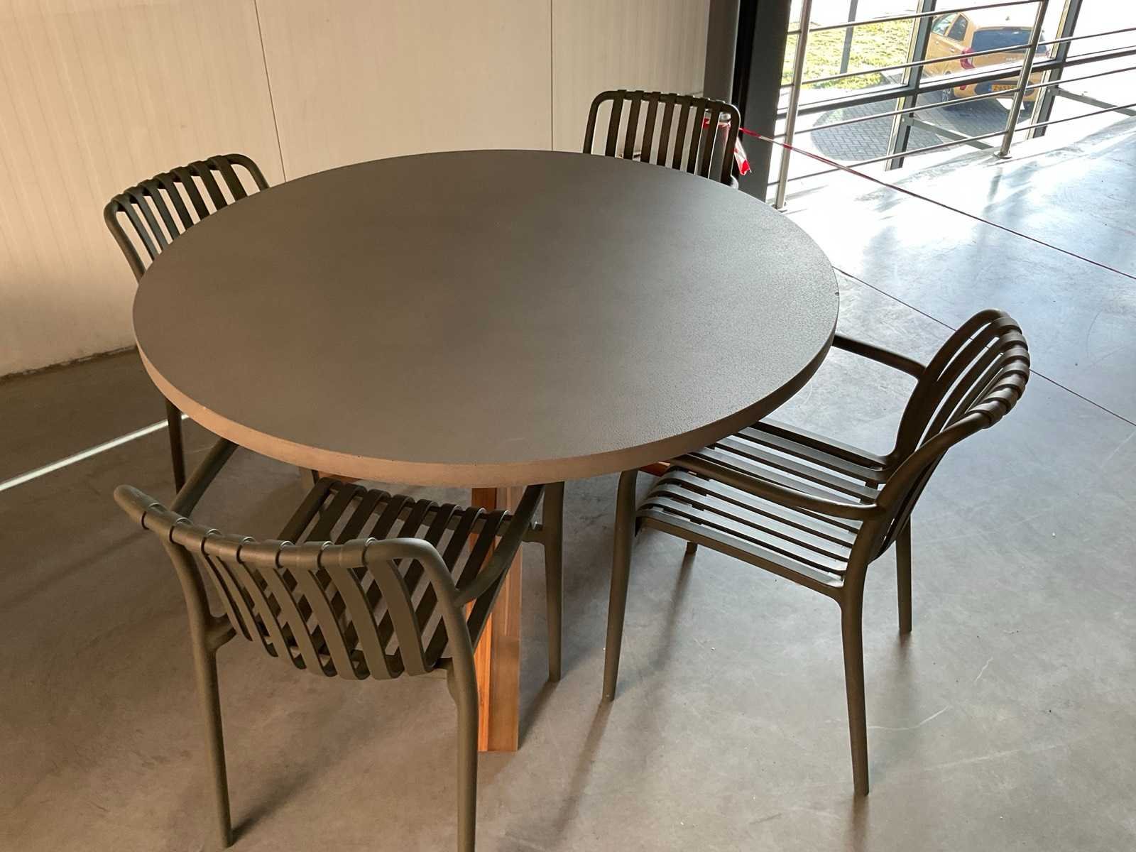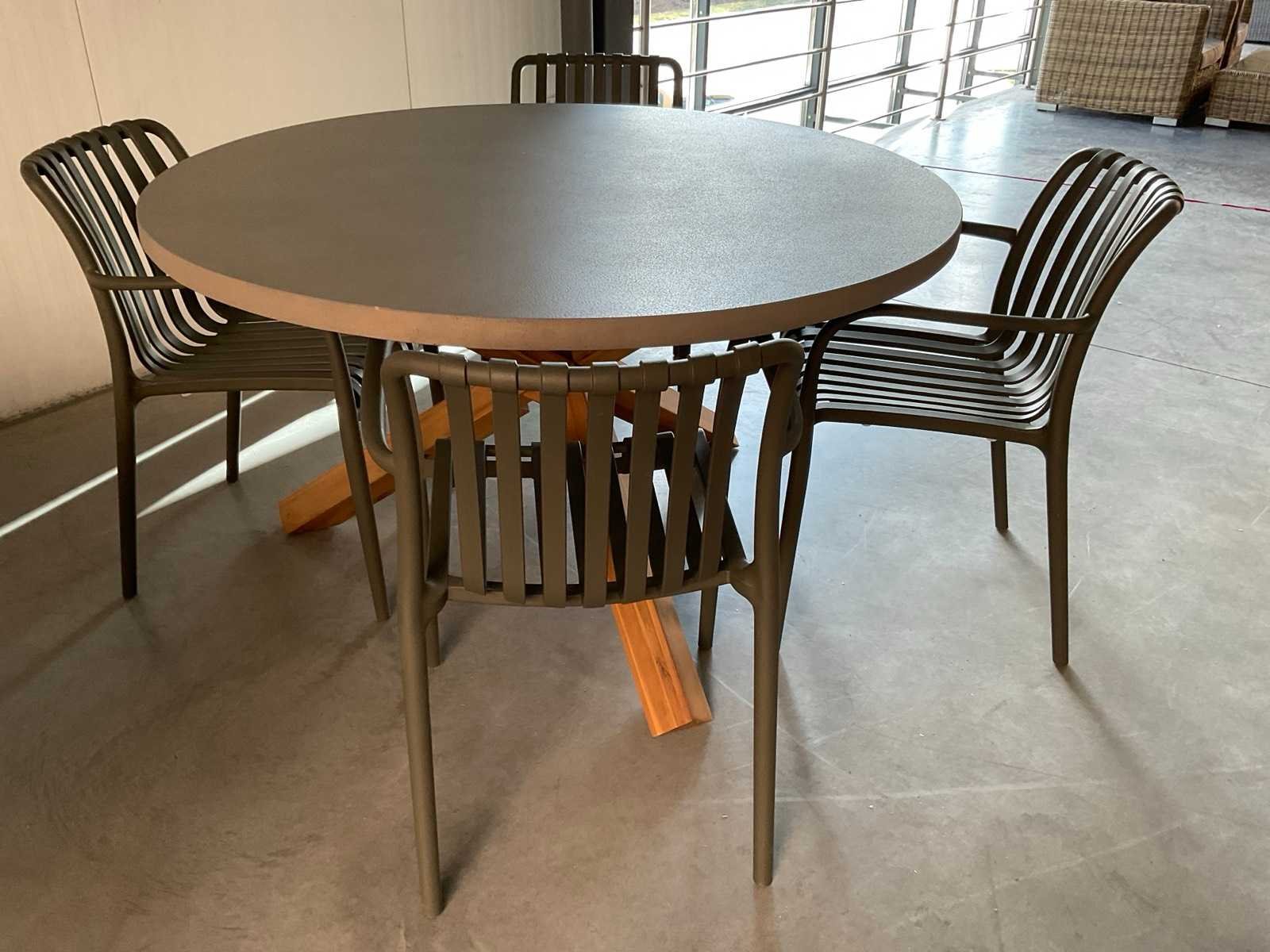 4x tuinstoelen. 1x tuintafel Showroomodellen. Model: Giop Lengte: 135cm Hoogte: 72cm