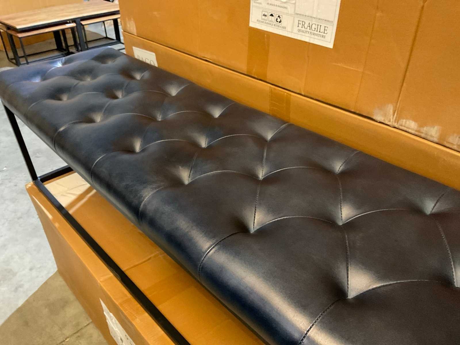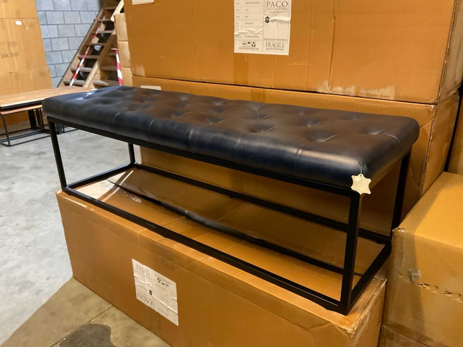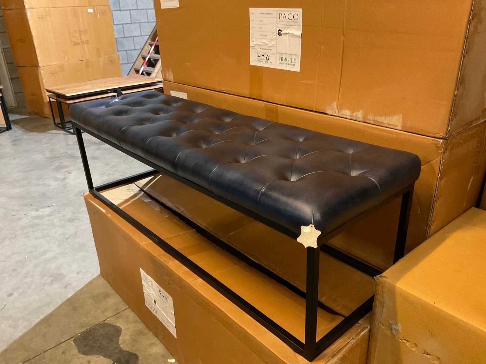 Nieuw in doos. Model: Cameron Kleur: Blauw Lengte: 44cm Breedte: 140cm Hoogte: 44cm Materiaal: Leer