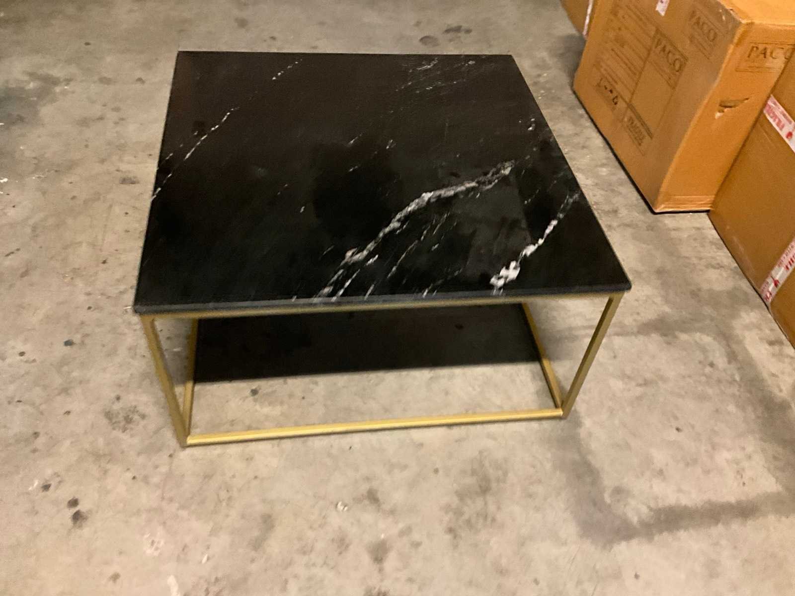 Marmeren blad Goudkleurig stalen onderstel Zware uitvoering Nieuw in doos Model: Boucle Lengte: 80cm Breedte: 80cm Hoogte: 40cm