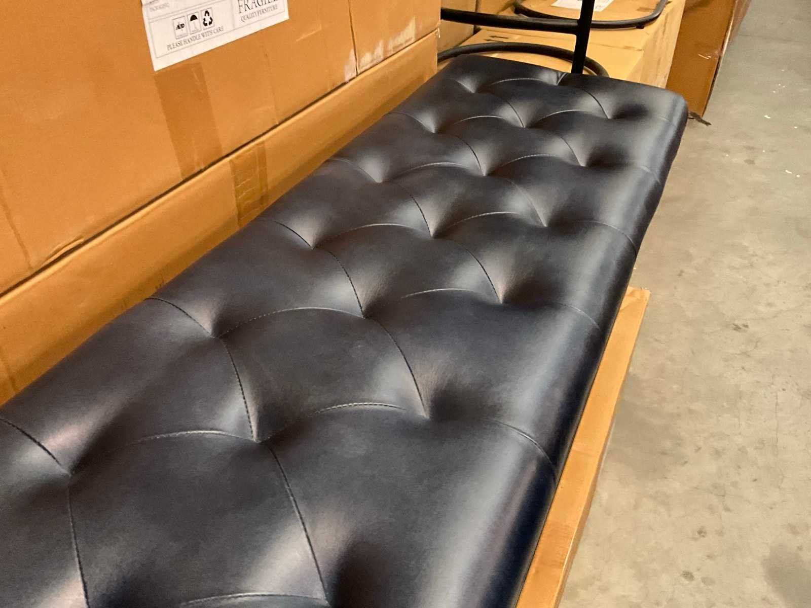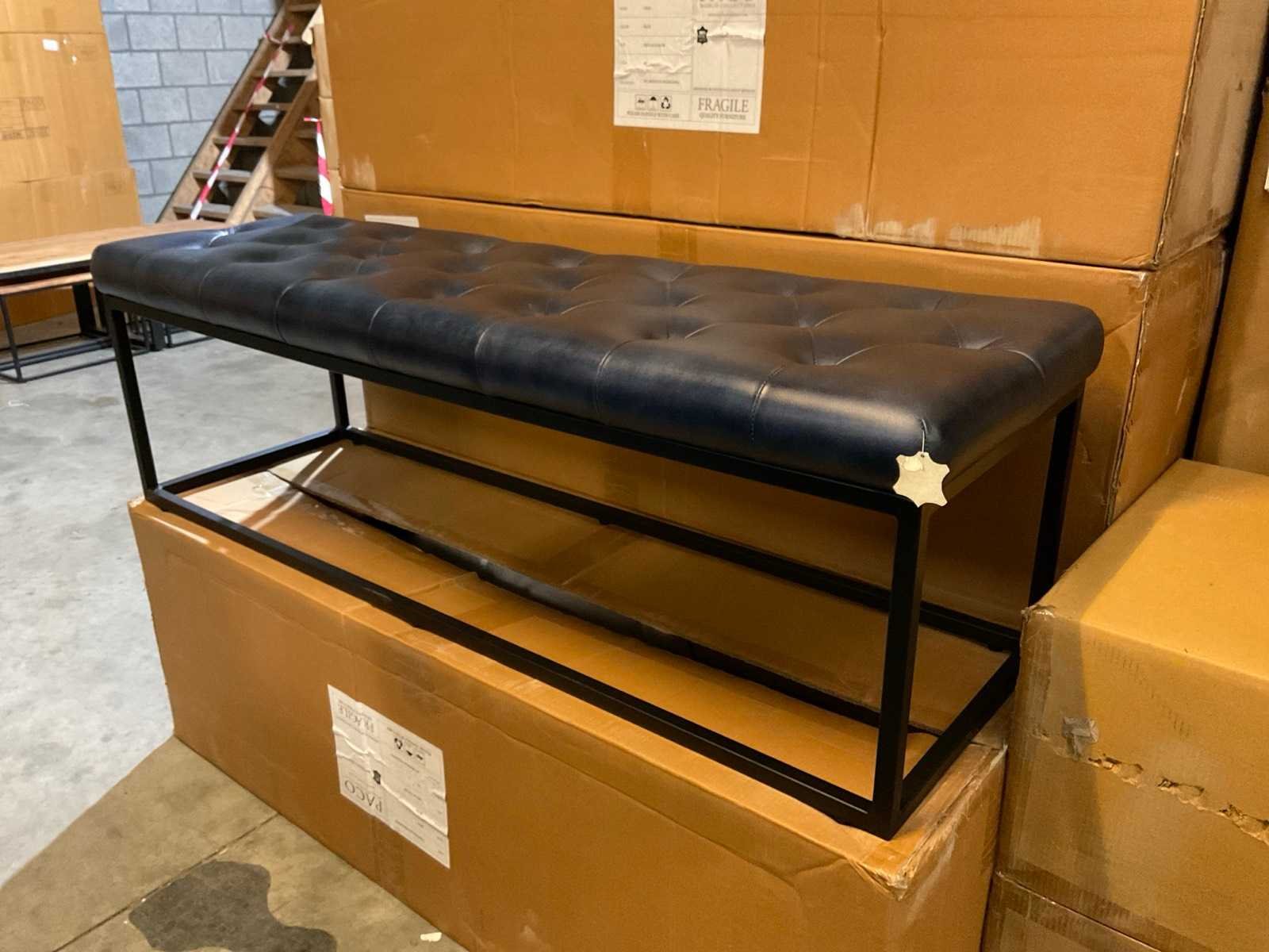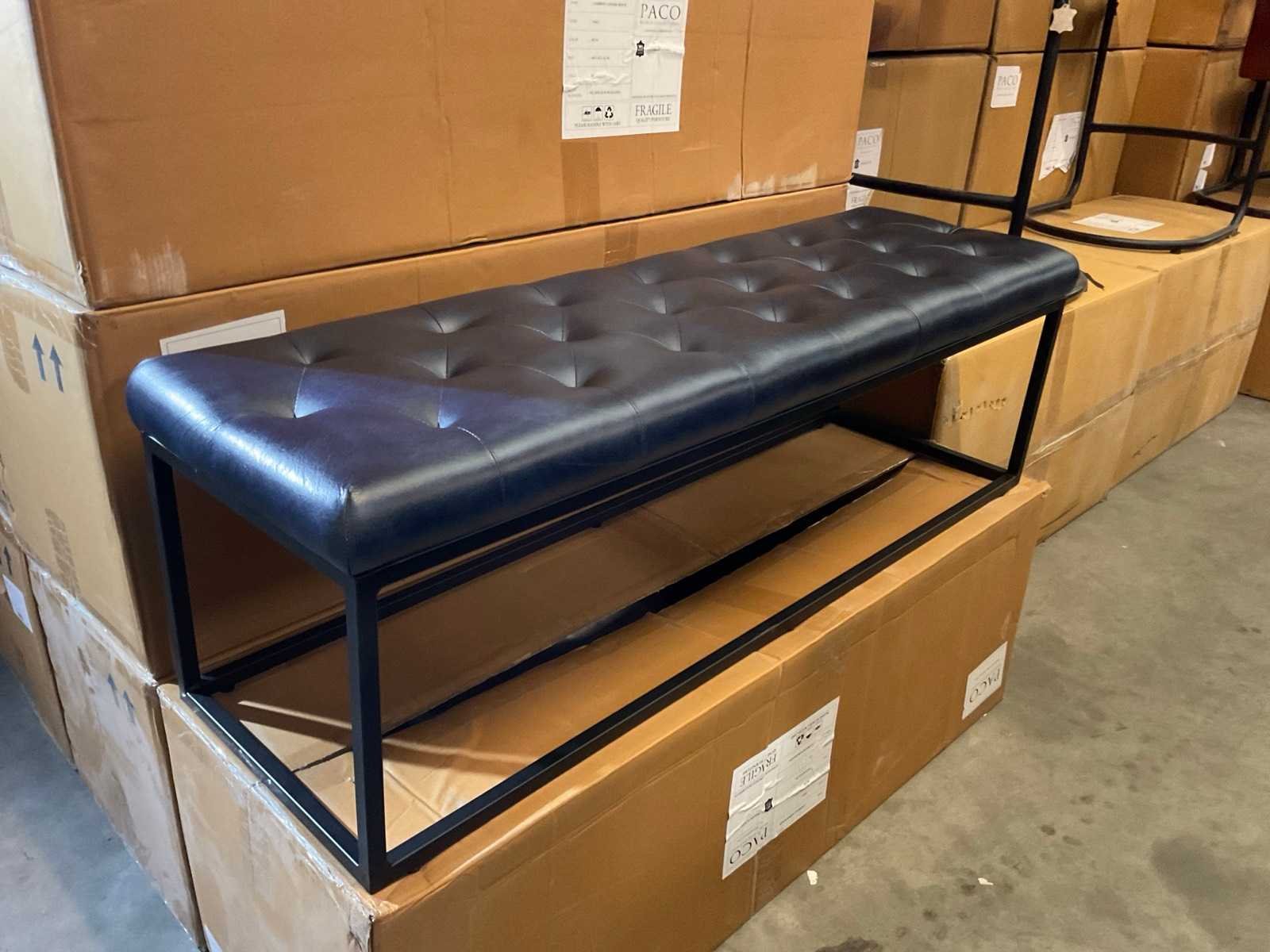 Nieuw in doos. Model: Cameron Kleur: Blauw Lengte: 44cm Breedte: 140cm Hoogte: 44cm Materiaal: Leer