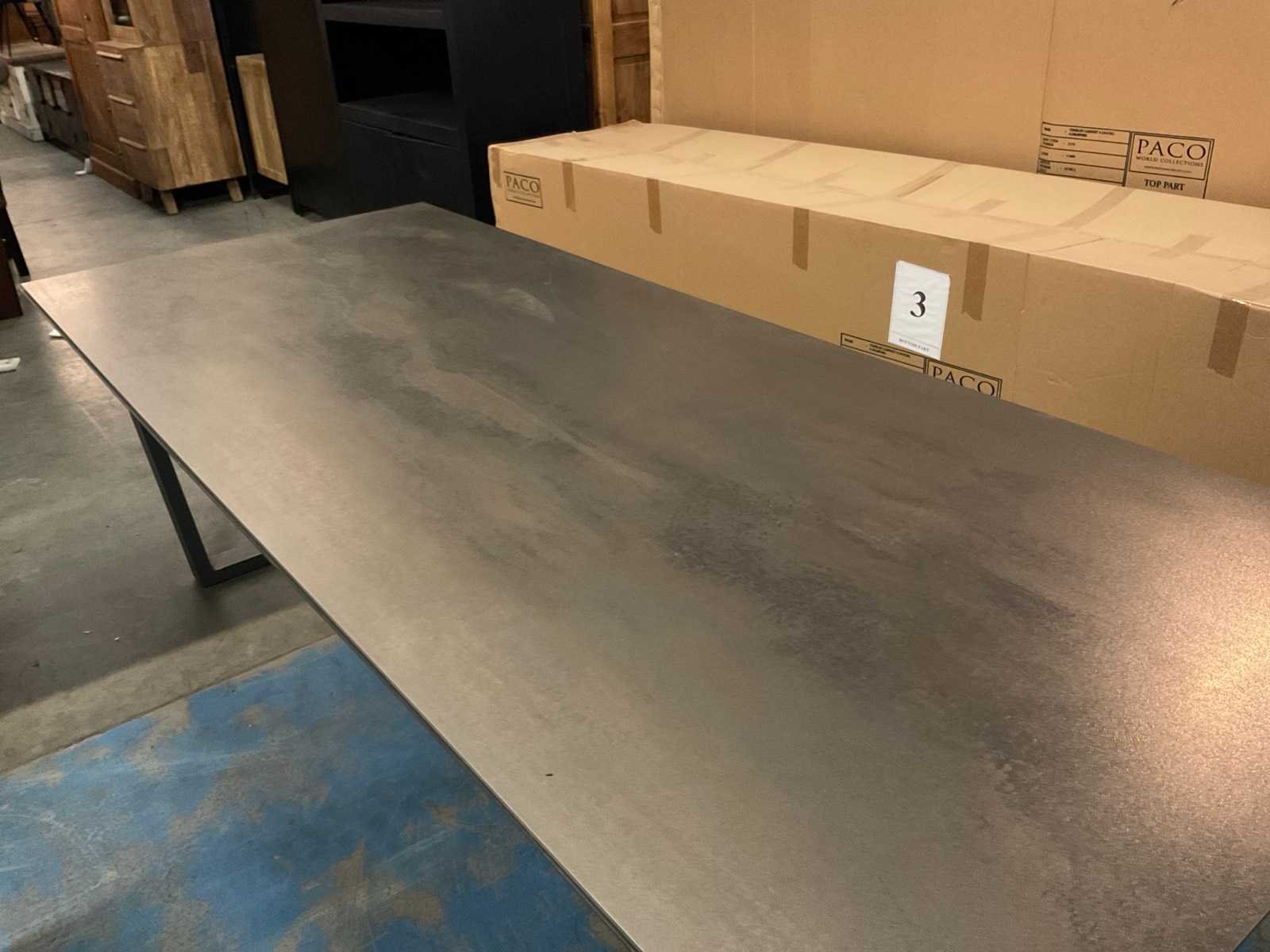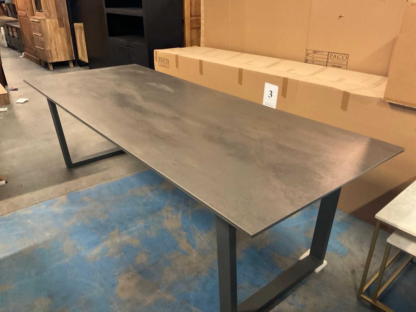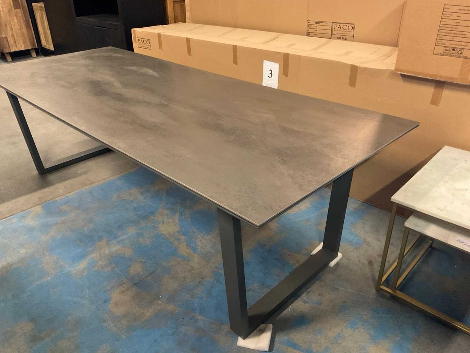 Showroommodel. Er zit een scheur in het blad. Model: Jare Lengte: 100cm Breedte: 250cm Hoogte: 73cm